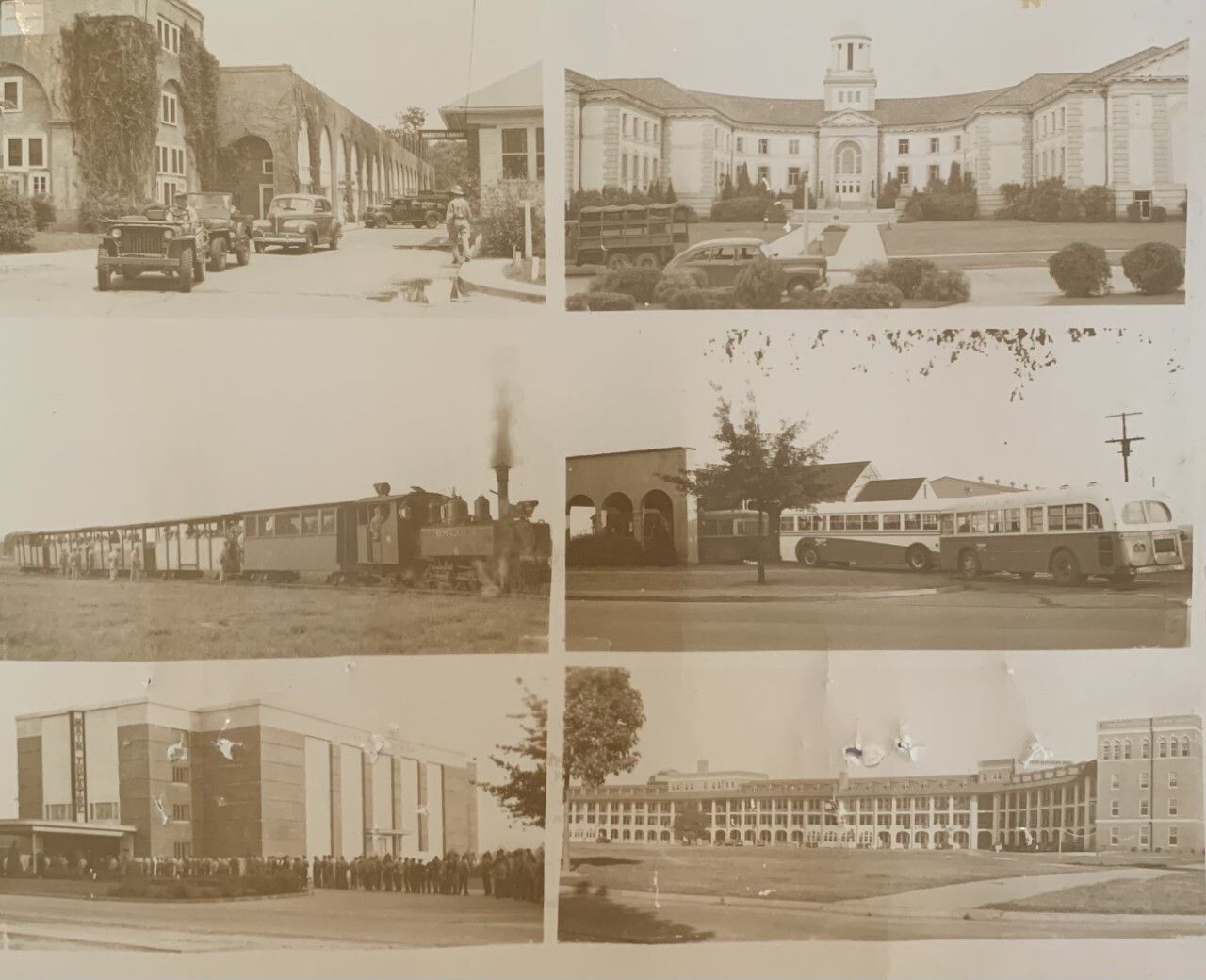 Various buildings that were on a military base with people working in the photographs.Collection