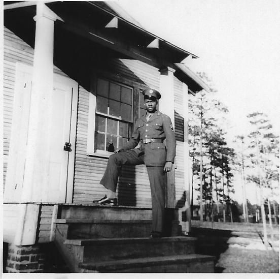 Herbert Sims on the front porch of the school; taken while he was on leave and came home to visitPhotograph Details