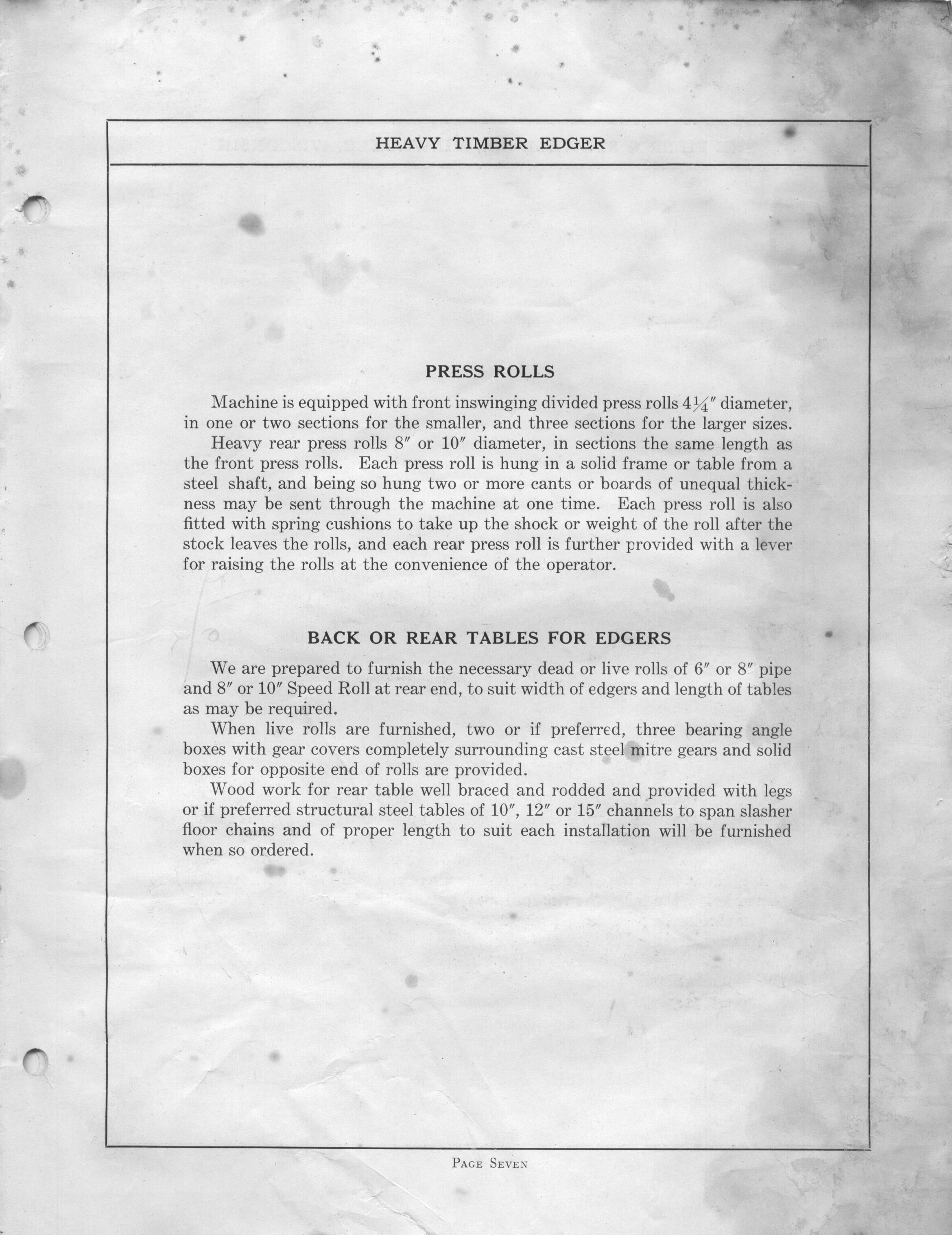 Filer & Stowell Heavy Timber Edger pg7Name Type
