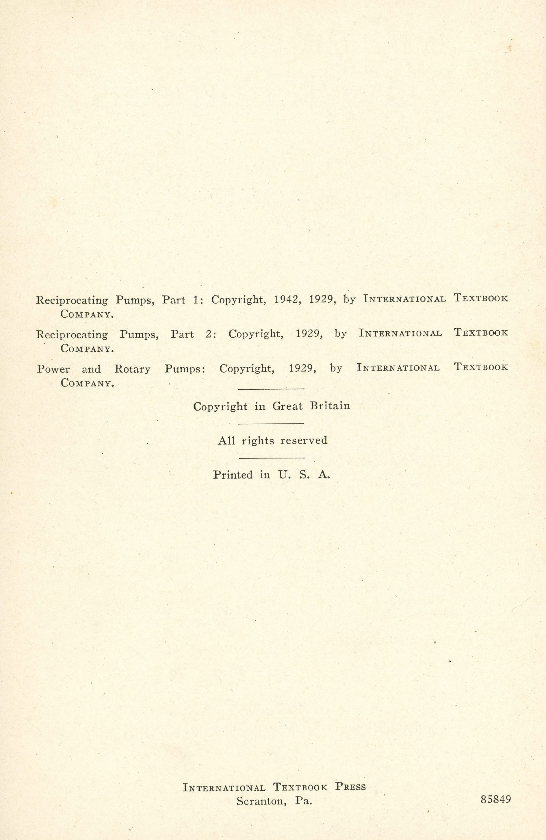 Reciprocating Pumps, Parts 1 and 2. Power and Rotary PumpsDescription