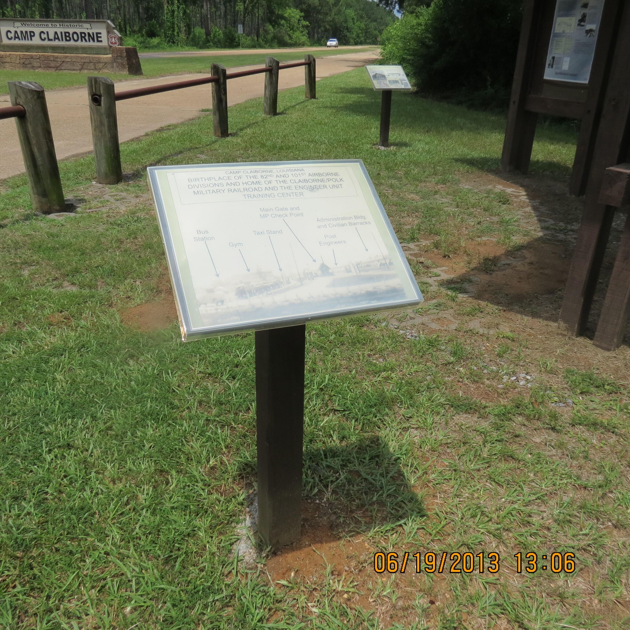 the kiosk of the Camp Claiborne site; the various label signs that give history and some pictures of buildings that were once seen at Camp Claiborne; the 82nd headquarters and division; the bus station and gymPhotograph Details