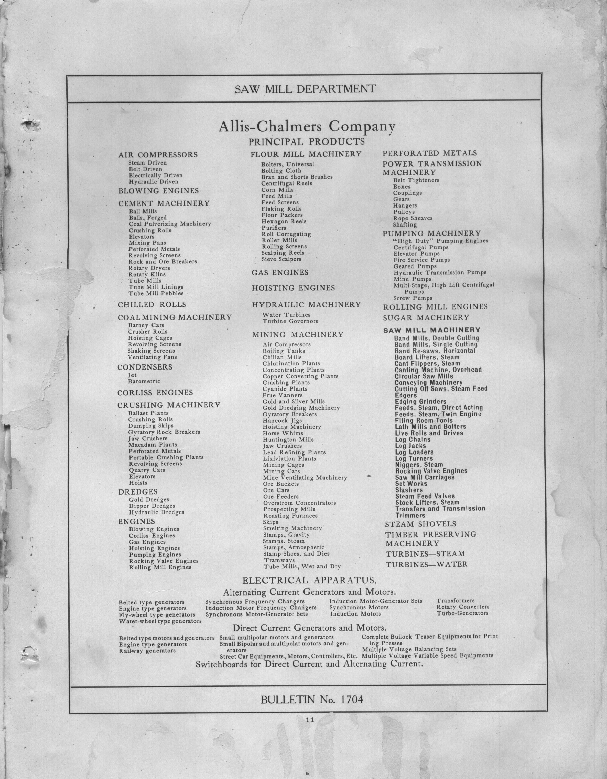 Allis-Chalmers Company: Saw Mill DepartmentVolume/Number/Issue