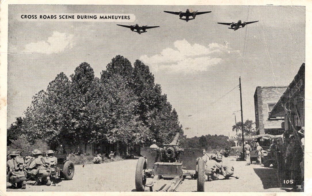 Postcard- Cross Roads Scene During Maneuvers- no location