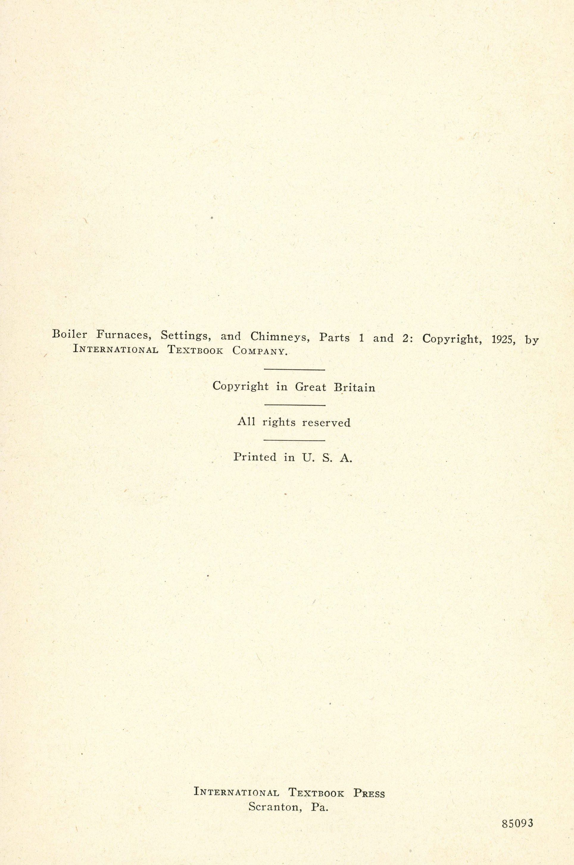 Boiler Furnaces, Settings, and Chimneys, Parts 1 and 2Description