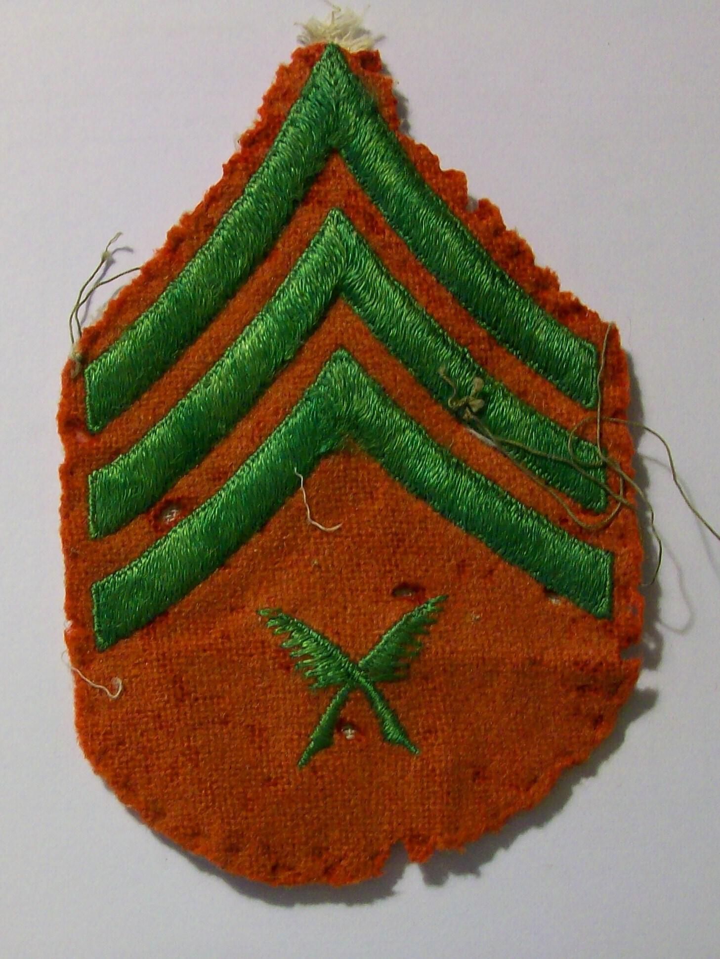 a CCC chevron for a leader; green thread and orange/brown fabricPhotograph Details