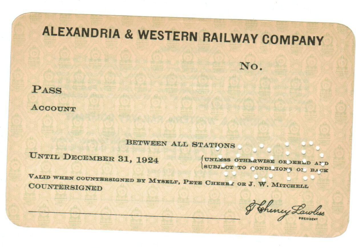 Alexandria & Western Railway Company Pass 1924Entry/Object ID
