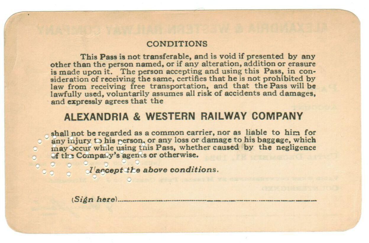 a blank pass for the Alexandria & Western Railway Co.Collection
