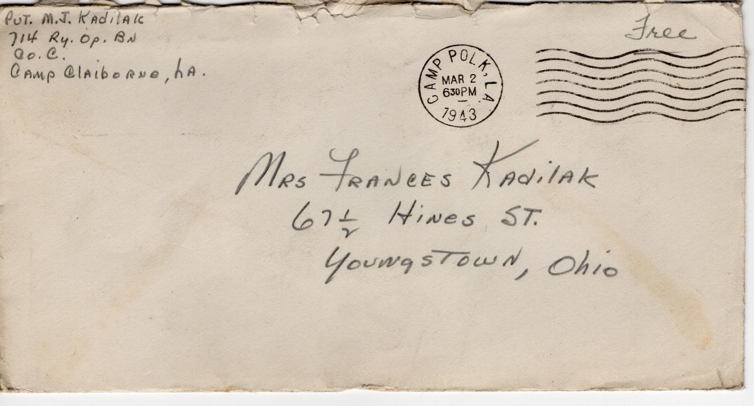 Pvt. M. J. Kadilak 1943-3-2