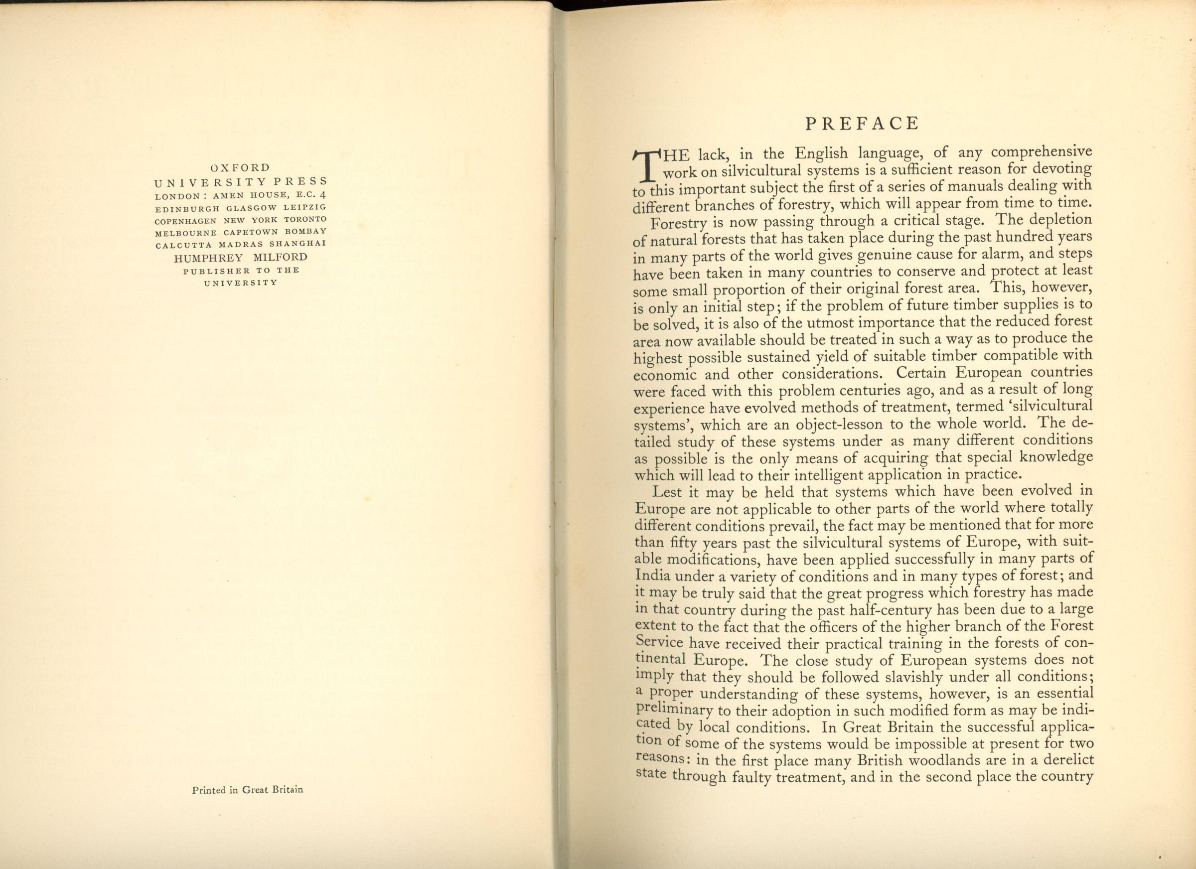 a book to be seen as a "practical study of systems in the forest" in regards to silvicultural systems; various systems that are used around the worked are discussed and why each one works for those placesContext