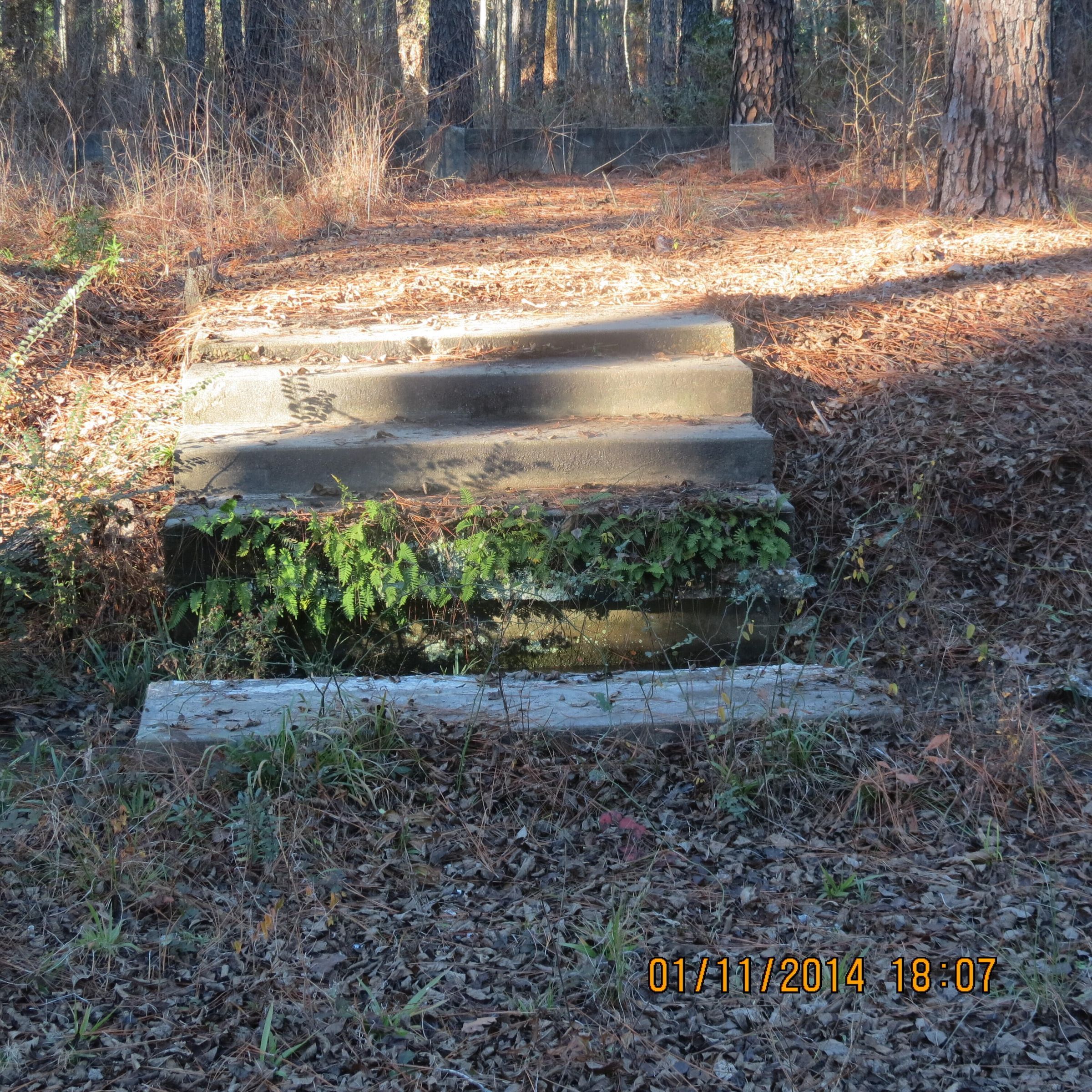 home photos (from who?) of the Red Cross building at Camp Claiborne and its staff; the remains of the main entrance steps; the side walk to the steps; foundationPhotograph Details