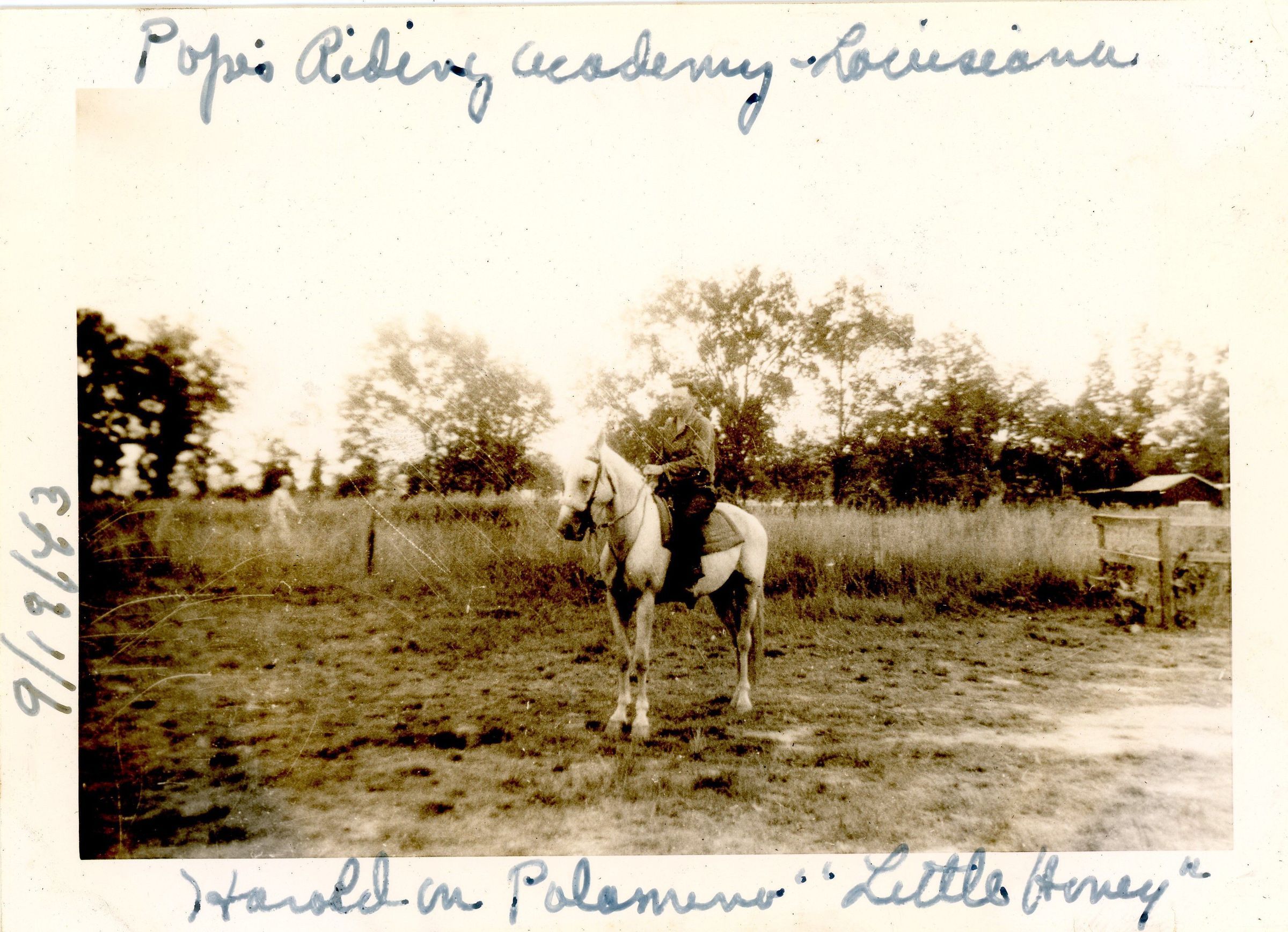 Pope's Riding Academy - Louisiana; 9/19/43; Harold on Palomino "Little Honey"Material/Technique