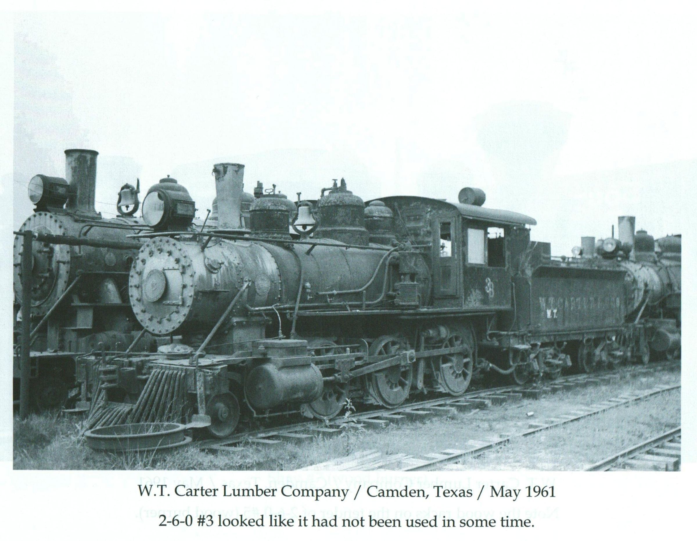W. T. Carter Lumber Company / Camden, Texas / May 1961 2-6-0 #3 looked like it had not been used in some timeMaterial/Technique