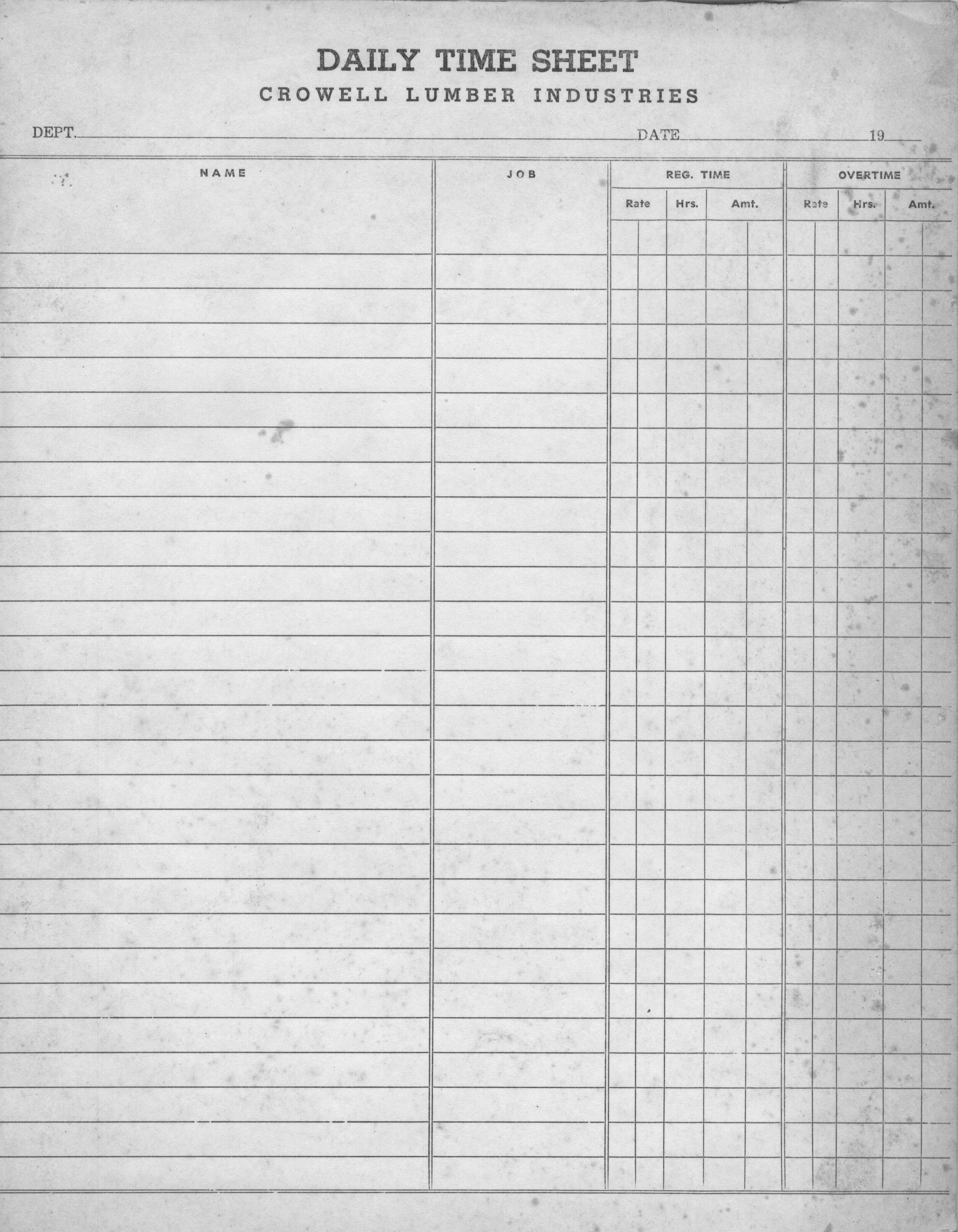 time sheet for Crowell & Spencer Lumber Co.Collection