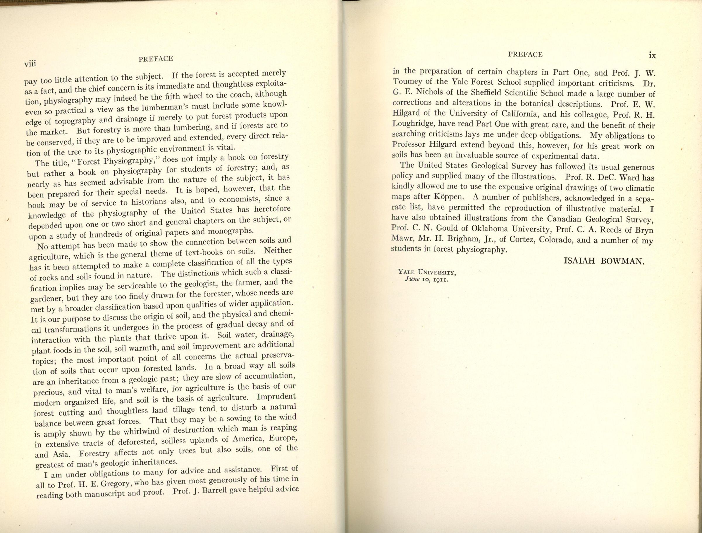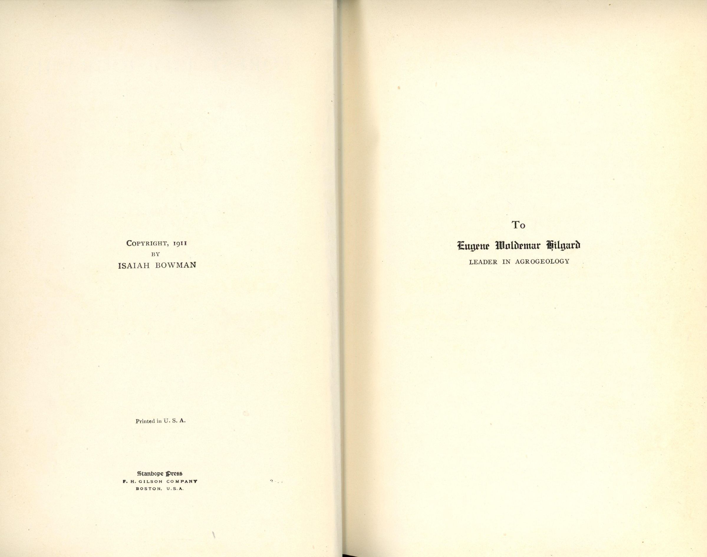 a book on physiography for students of forestry but to be also used by historians and economists; main focus on the relation with soil and agriculture; 3 maps included with different topography shown; inscriptions on front 2 pagesContext