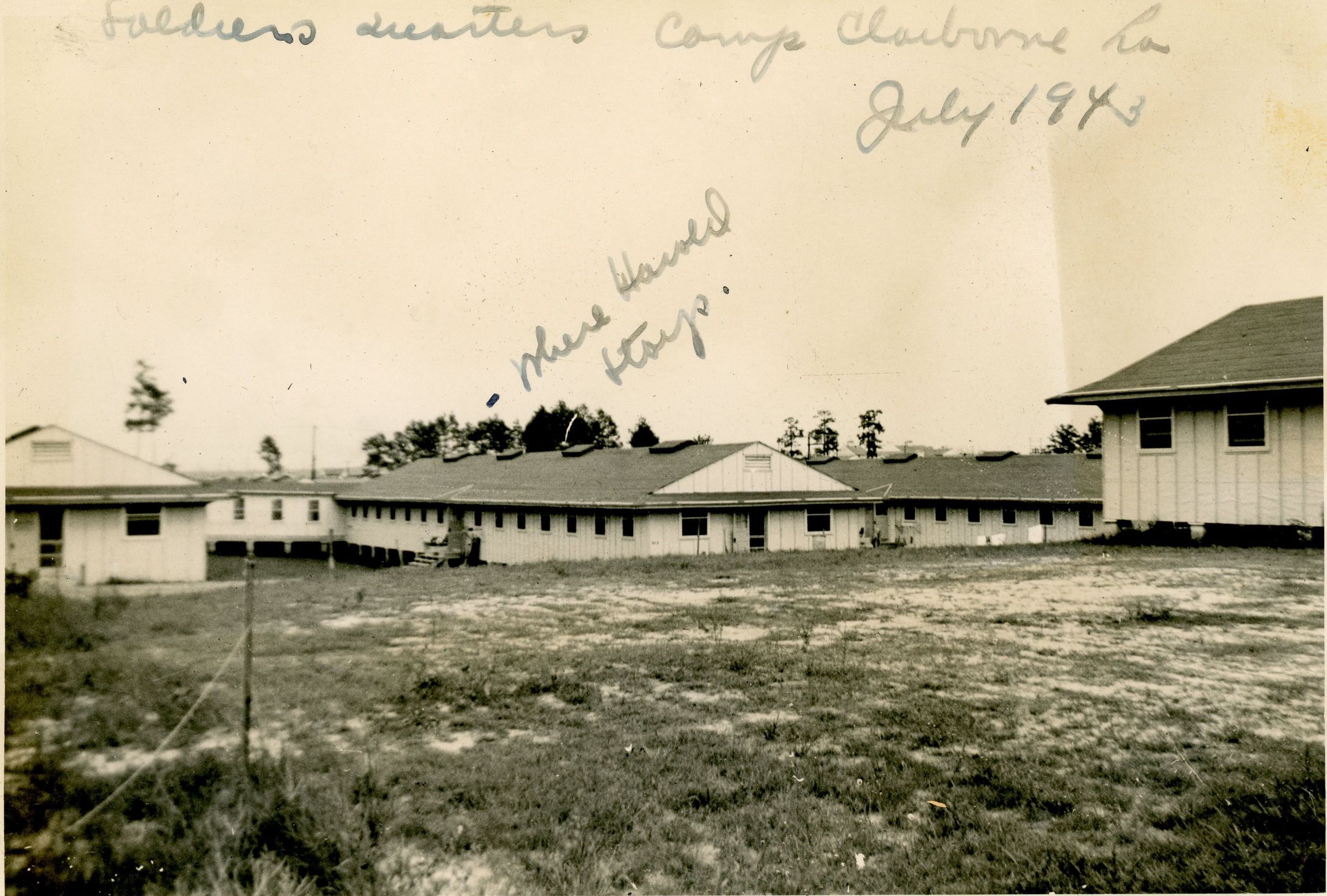 Photo of Camp Claiborne with handwritten inscriptions, July 1943Photograph Details