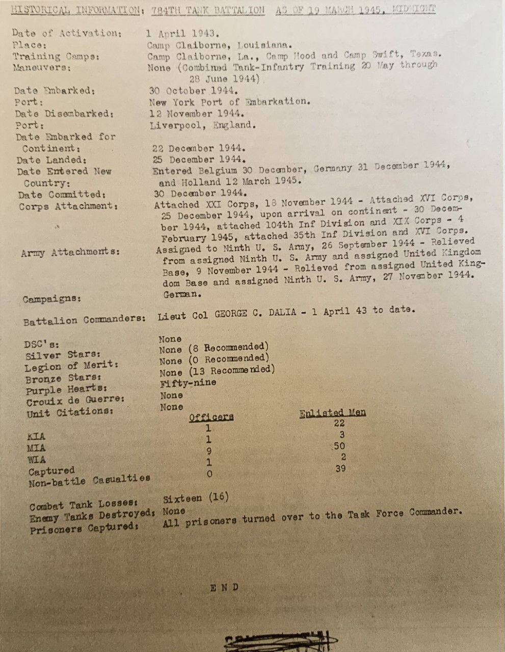 784th Tank Battalion Historical Information a of 19 March, 1945Entry/Object ID