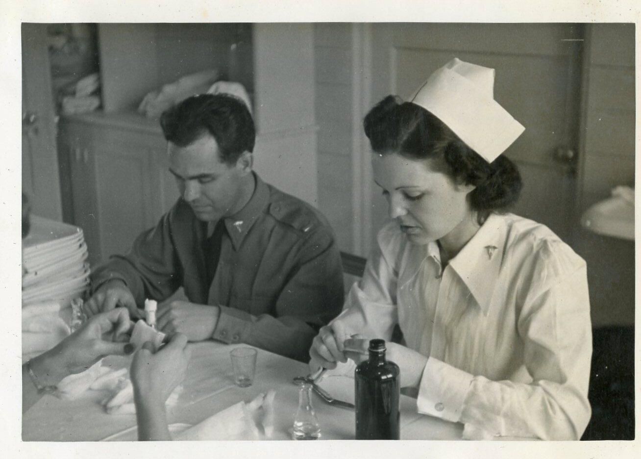 Not just nurses worked in the Hospital at Camp Claiborne, here we see an officer working on a nurses duty to get the job done.Collection