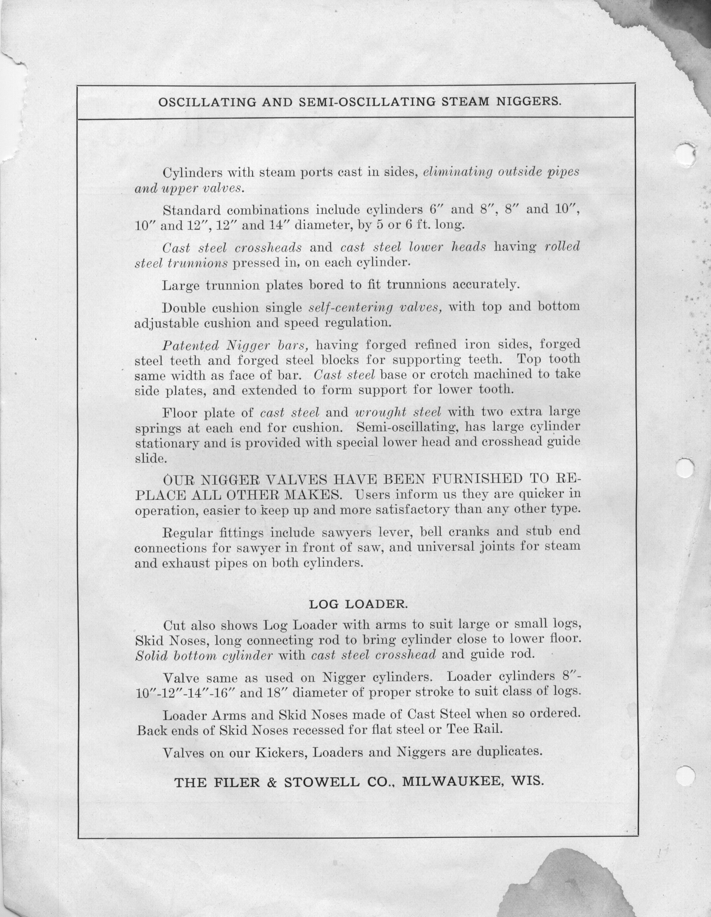 Filer & Stowell Steam Niggers & Log Loaders pg1