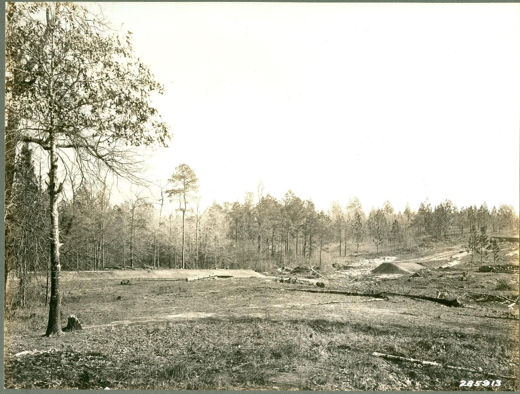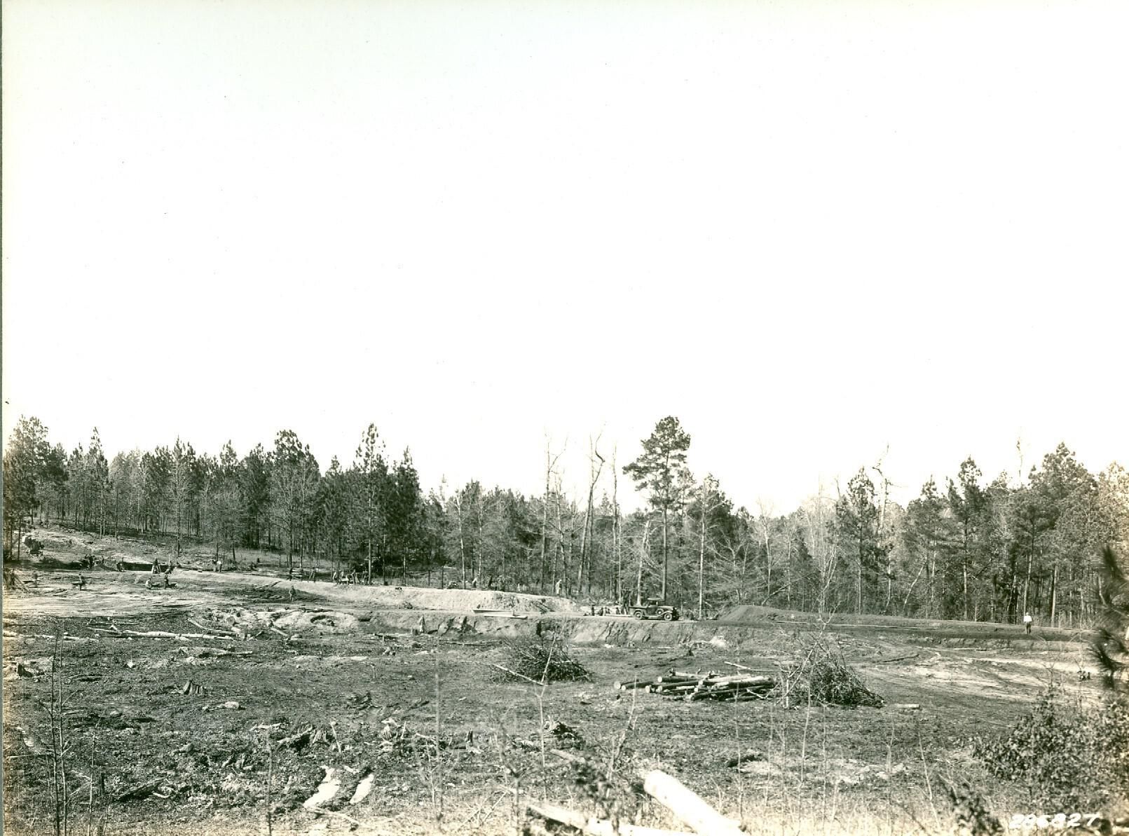 B434-1-2(March 23, 1934 general view of partially constructed dam N E across basin - Kisatchie Nat Forest)