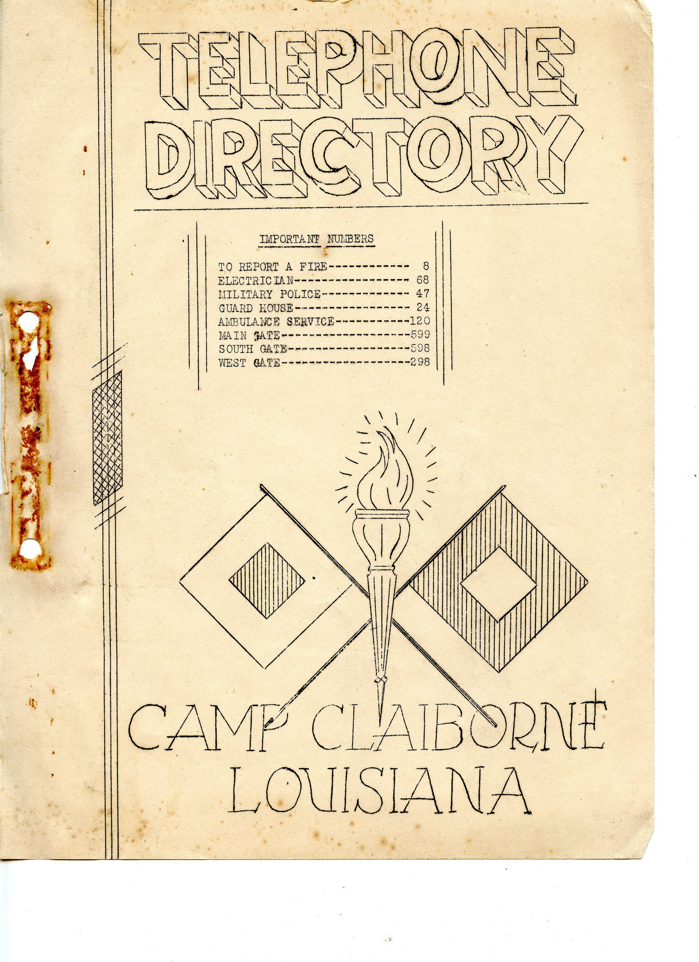 Front cover of the Camp Claiborne Telephone Directory circa 1942