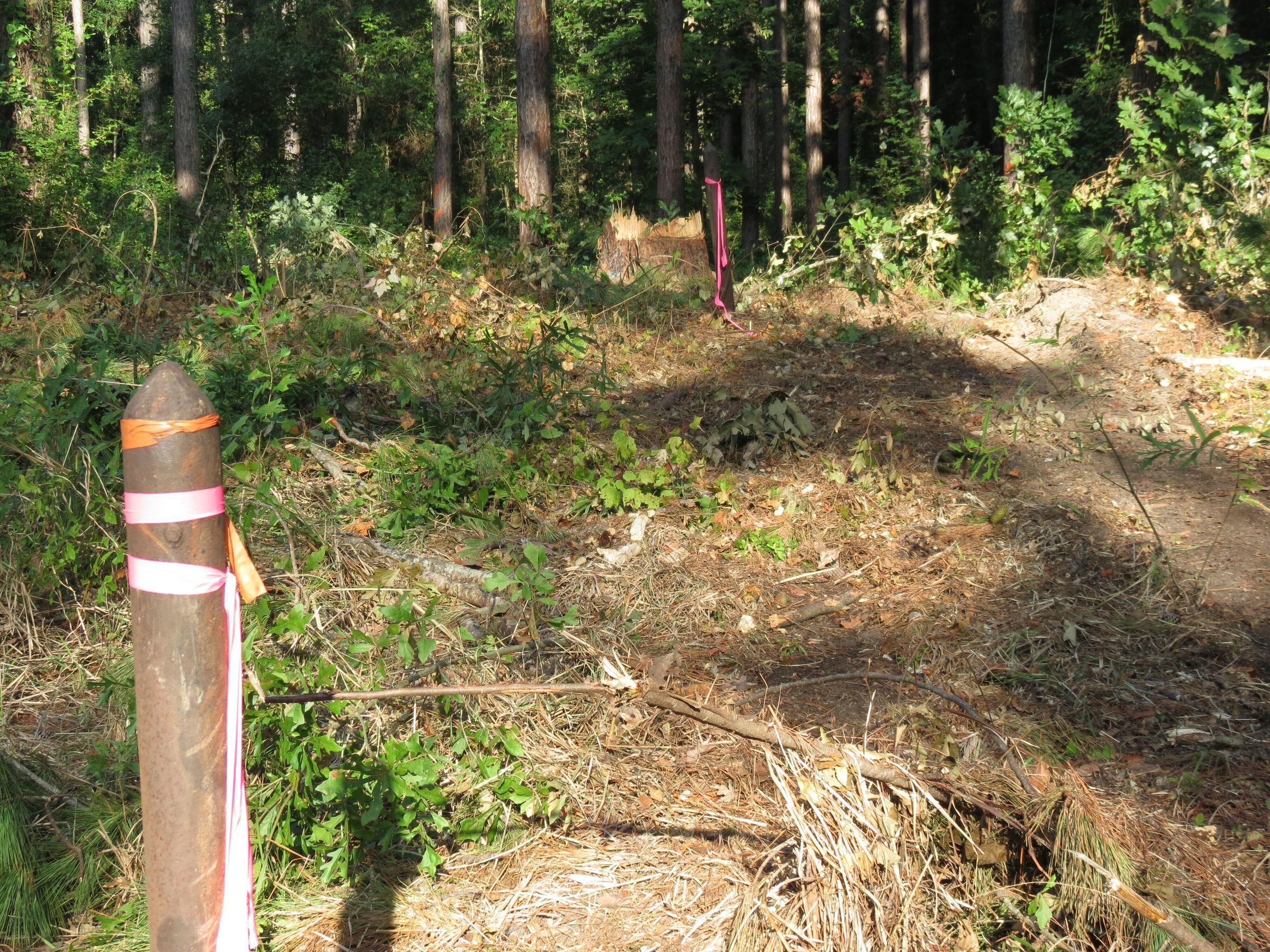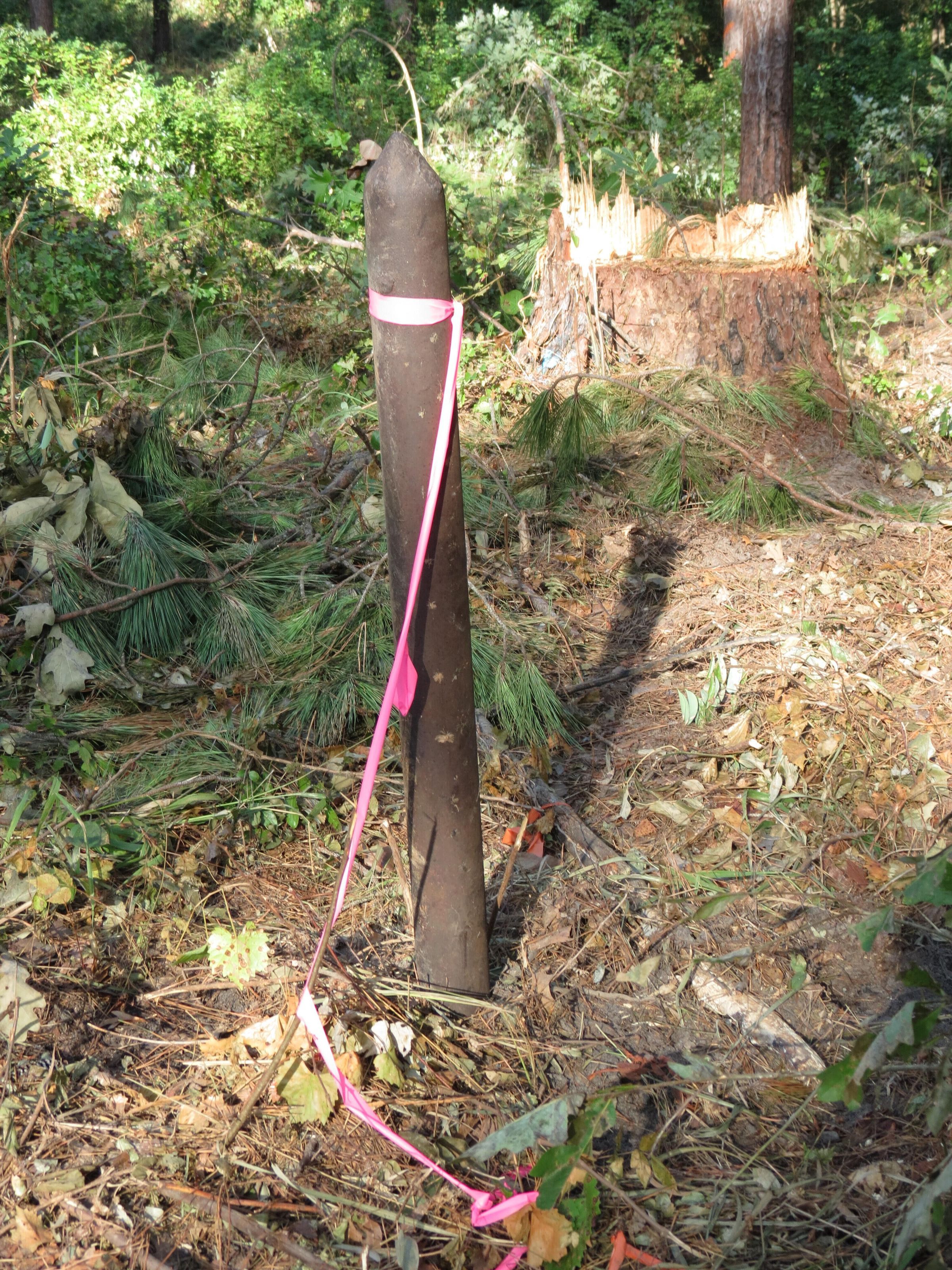 the tennis court by the recreation building at Camp Claiborne; posts for the nets; piece of the court's surfacePhotograph Details