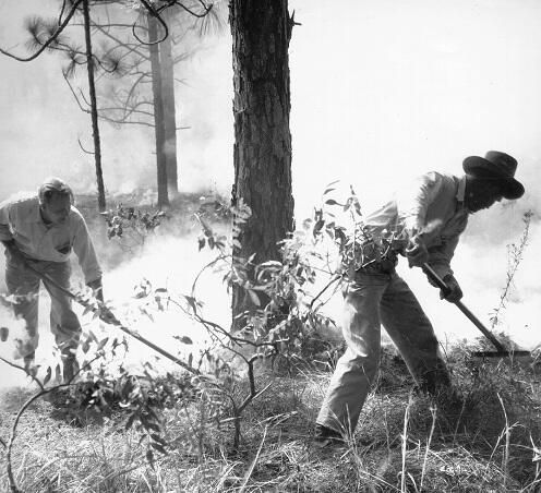 CCC fighting a forest fire by hand; fire truck for the CCCPhotograph Details