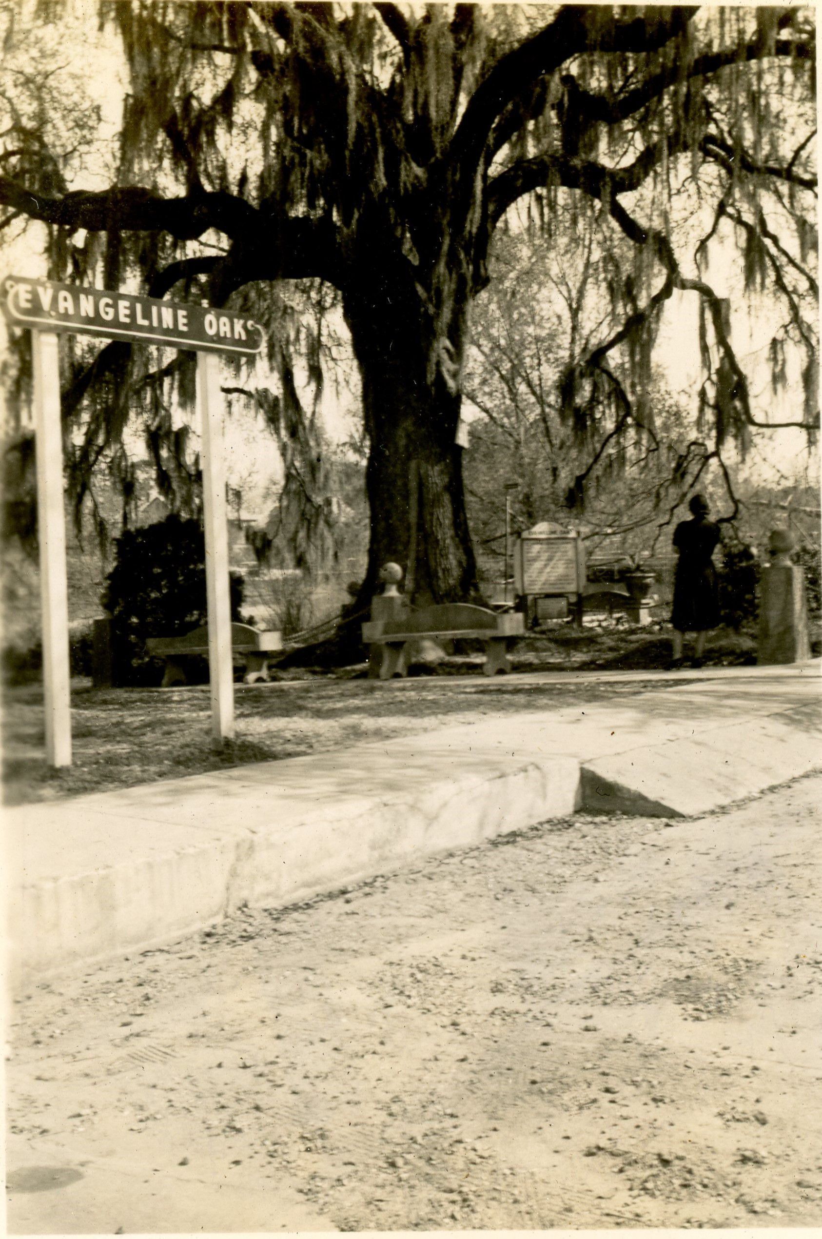 "Evan met her faithless lover here!" (Under the Evangeline Oak); "Evangeline Monument"; "St. Martinville Catholic Church, 150 years ago"; "Longfellow-Evangeline Park"Other Names and Numbers