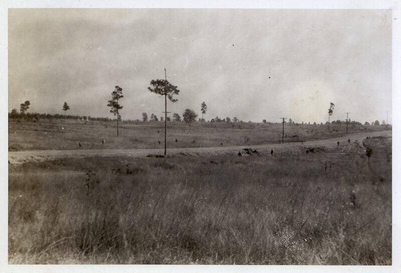 Shows another angle of the training field used by soldiers at Camp Claiborne.
