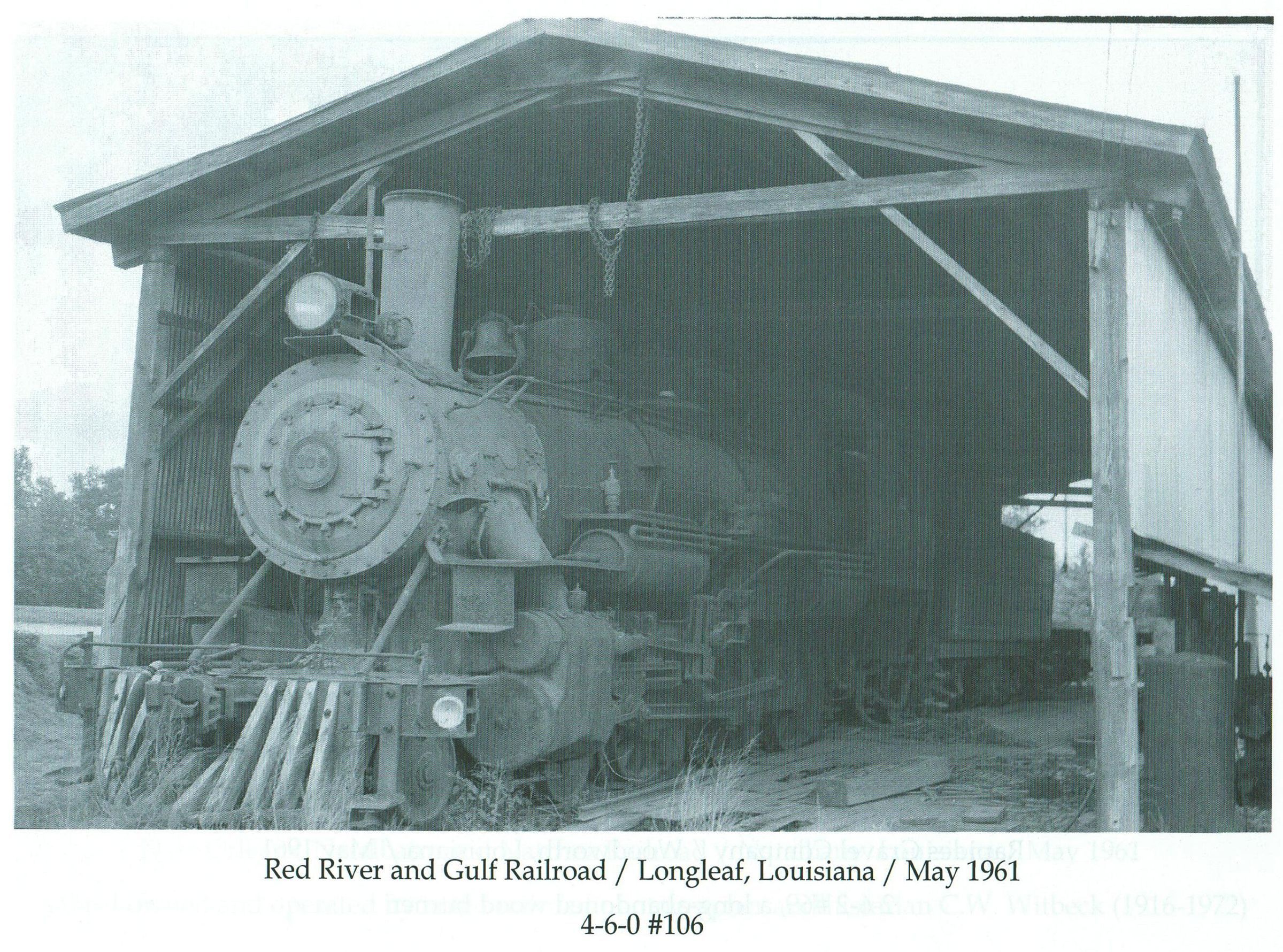 Red River & Gulf Railroad Co. was created by the same stockholders of the Crowell & Spencer Lumber Co.; Longleaf Mill was one of the branches for the Crowell & Spencer Lumber Co.; is the location of SFHM and #106 is still stored here todayCollection