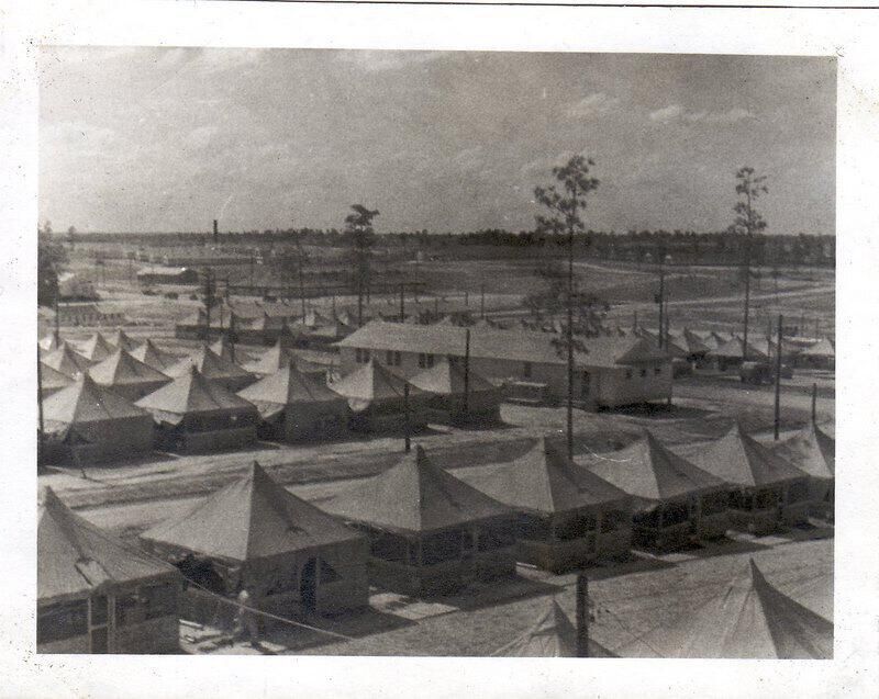 Shows the living conditions for field training soldiers at Camp Claiborne.
