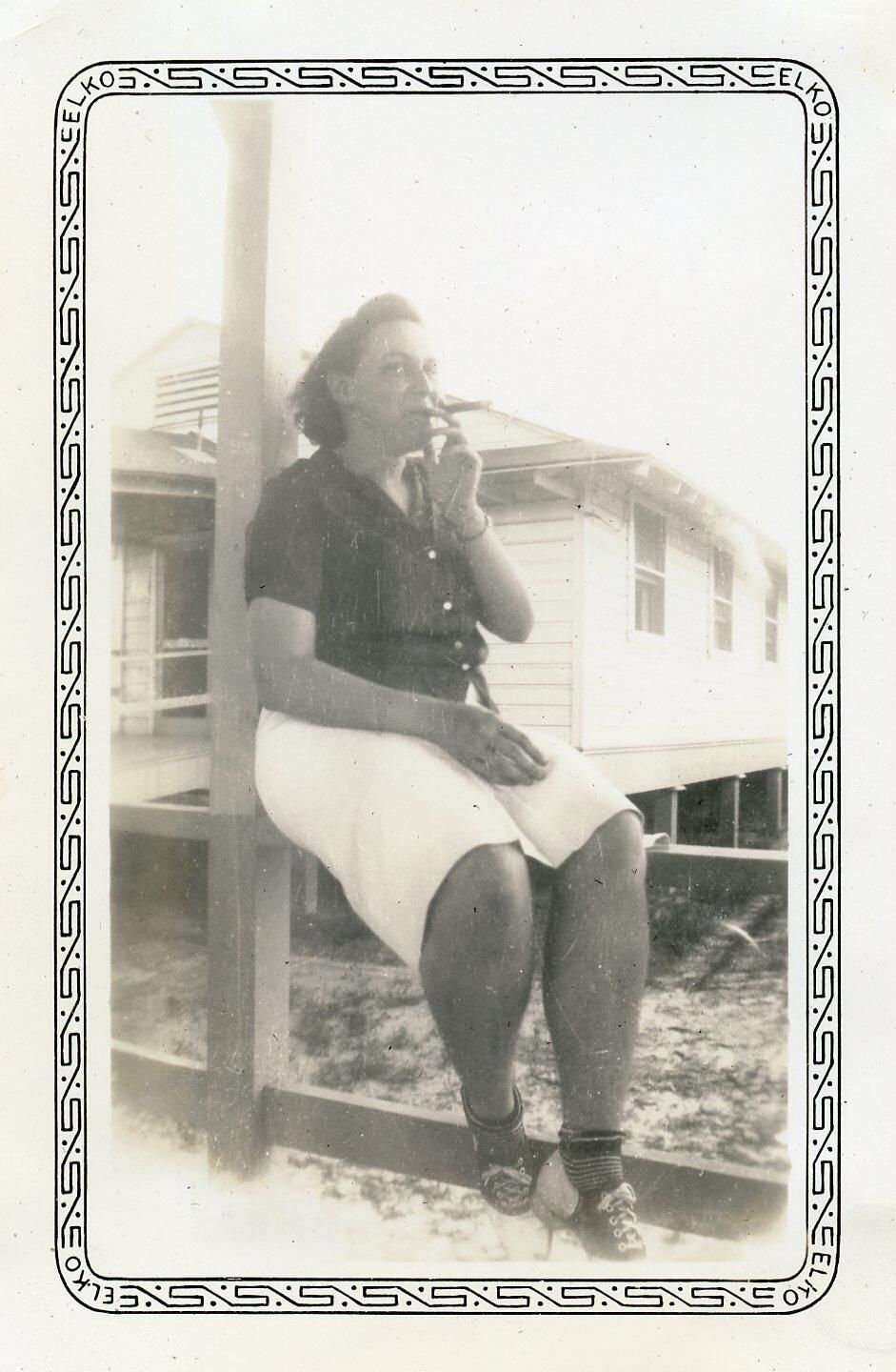 A photo of a cigar-smoking nurse at the Camp Claiborne hospital, Tiny HollingsworthPhotograph Details