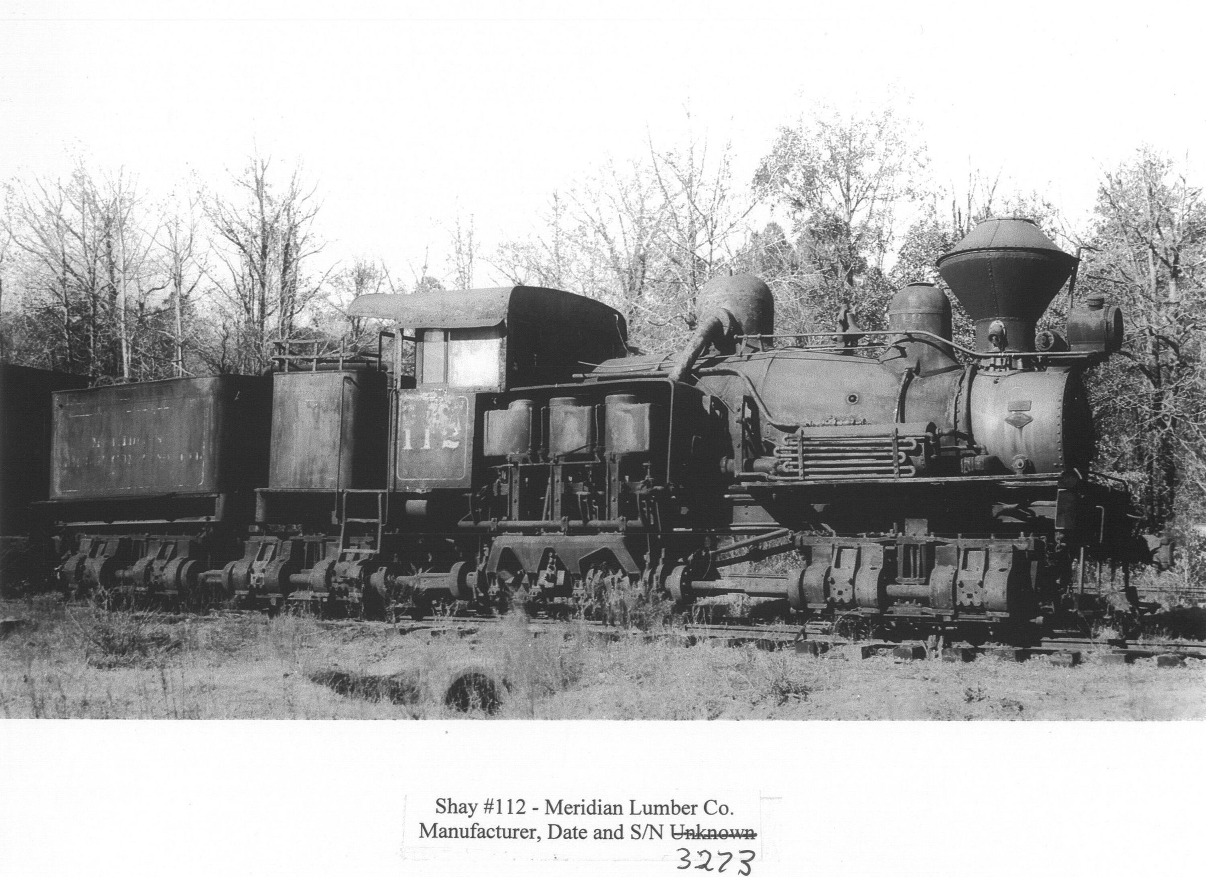 Shay #112 - Meridian Lumber Co. Manufacturer, Date and S/N UnknownMaterial/Technique