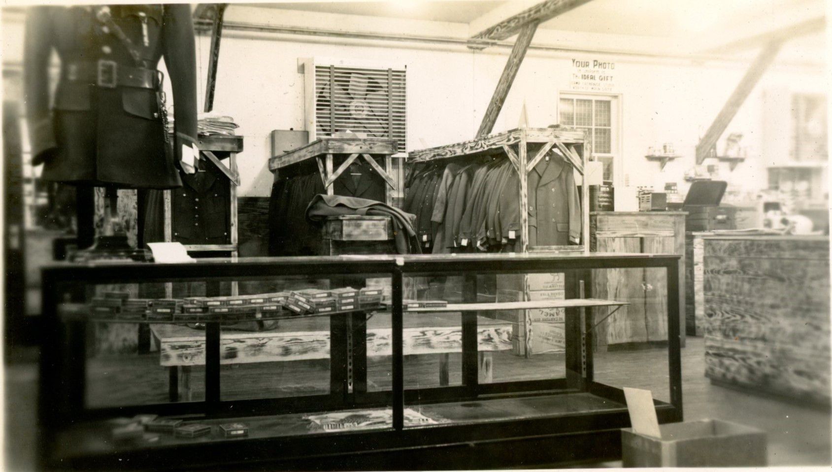 Photographs show community department stores on Camp Claiborne. Individuals could browse and peruse through luxury goods and enjoy quality customer service while on base.Collection