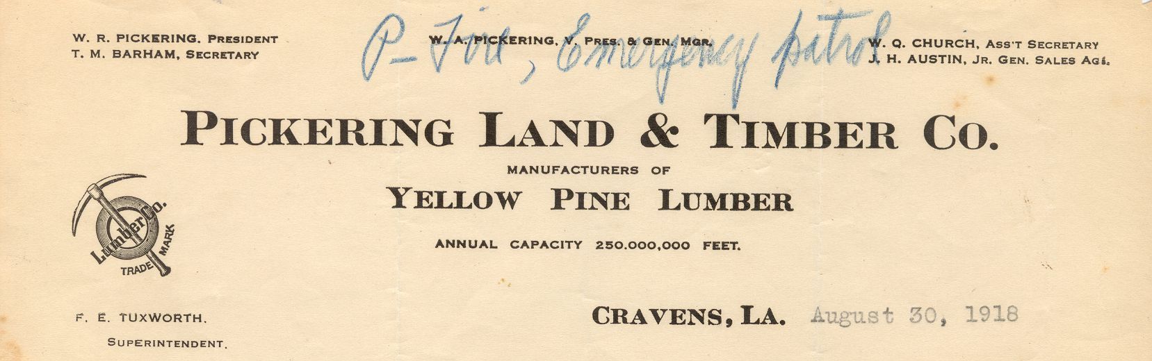 Letterhead from Pickering Land & Timber Co. Aug 30th, 1918Context