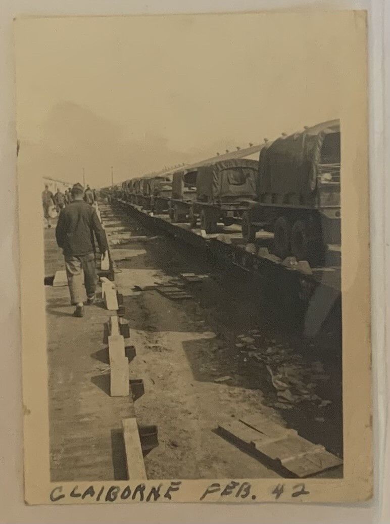 This photograph captures soldiers next to loaded railcars in February of 1942 at Camp Claiborne, LA.Collection