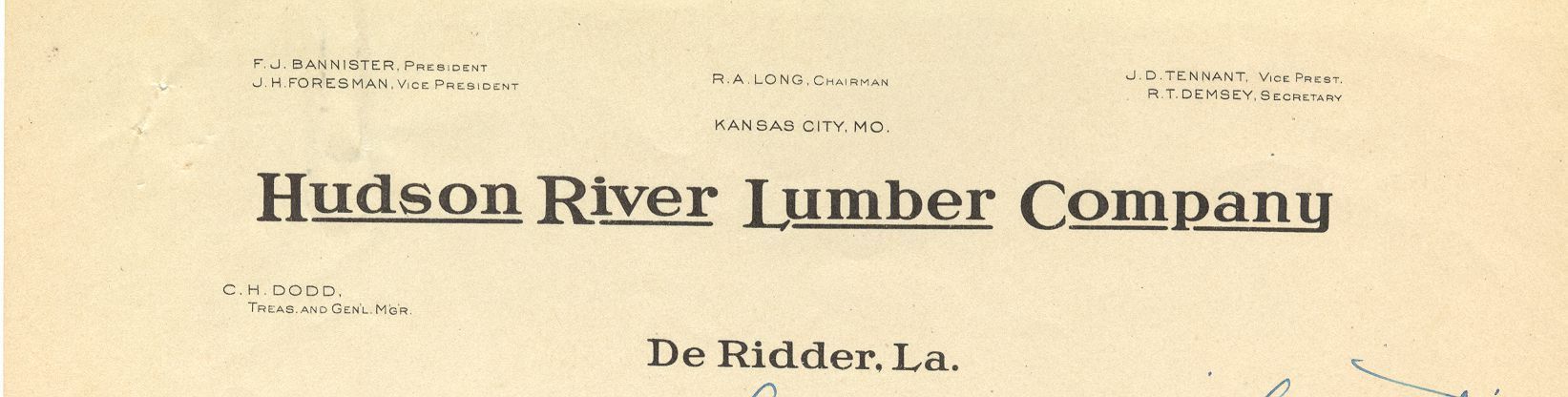 Hudson River Lumber Company began operations in De Ridder, Louisiana to extract lumber resources from the local area. However, the company was forced to shut down due to the lumber reserves drying up.Collection