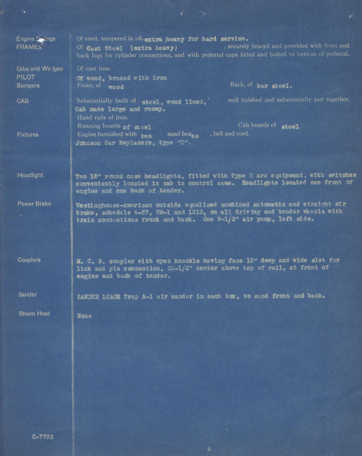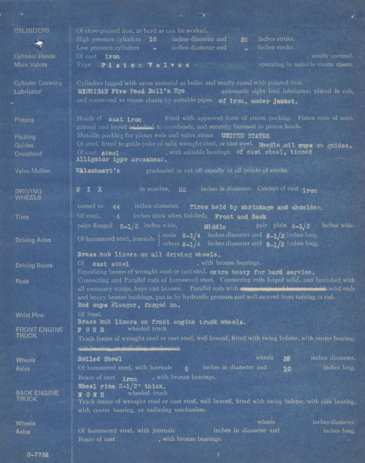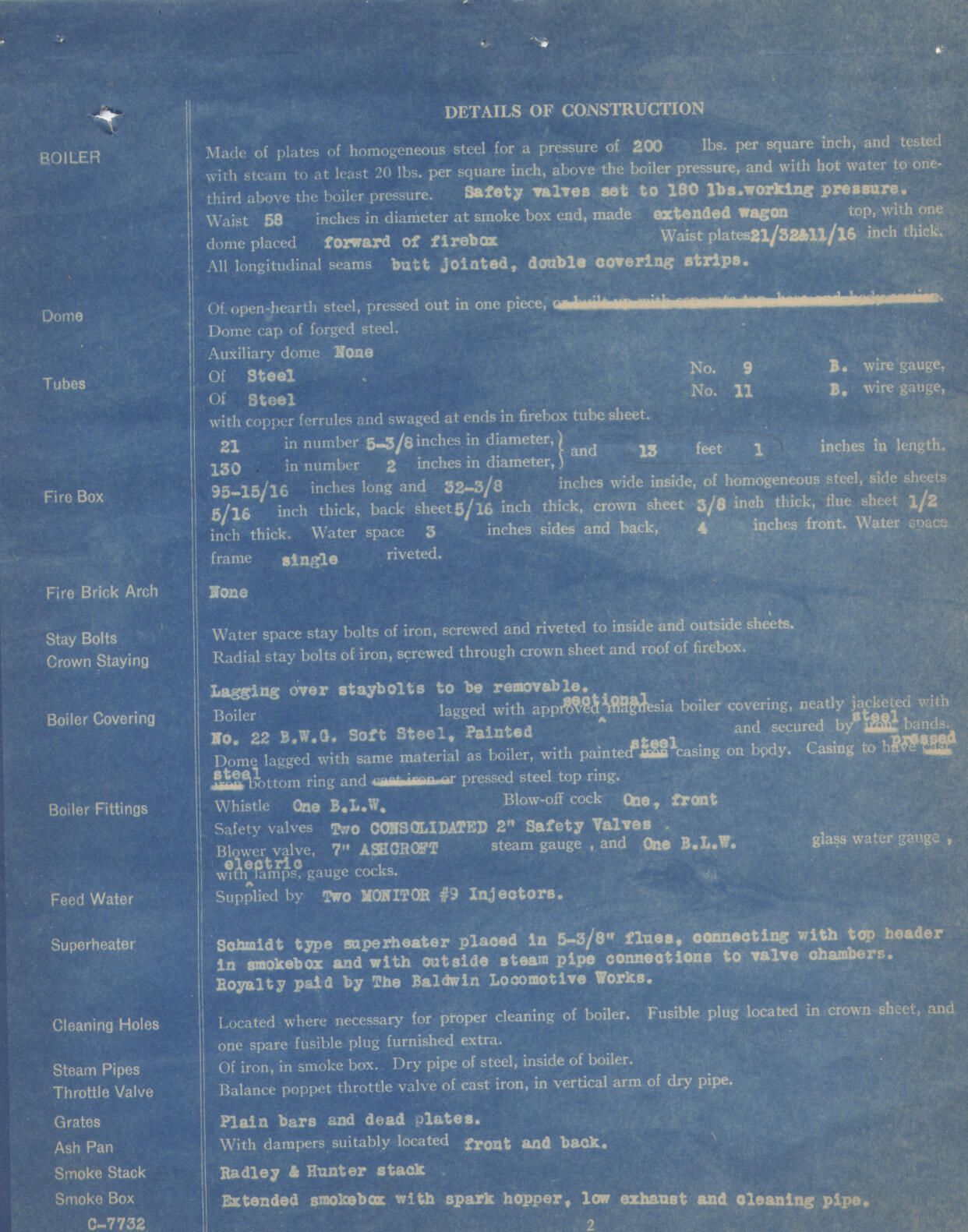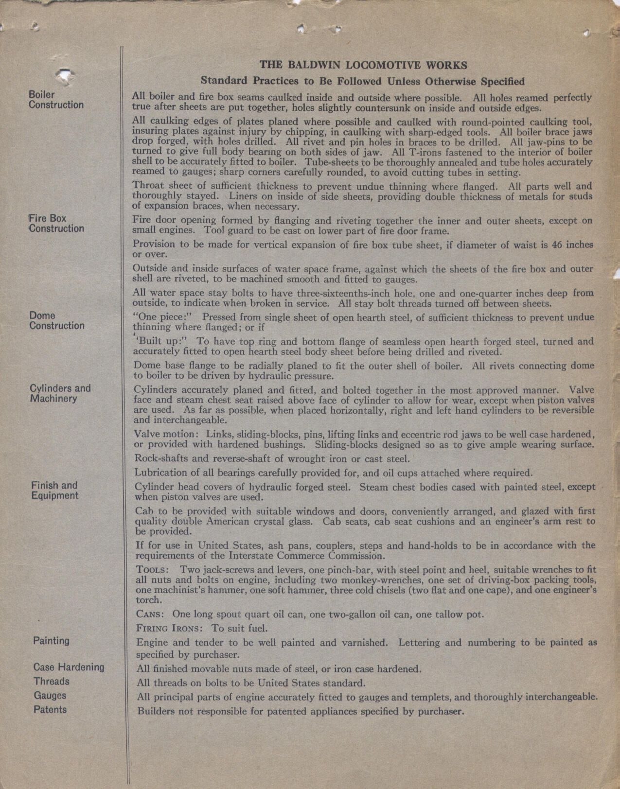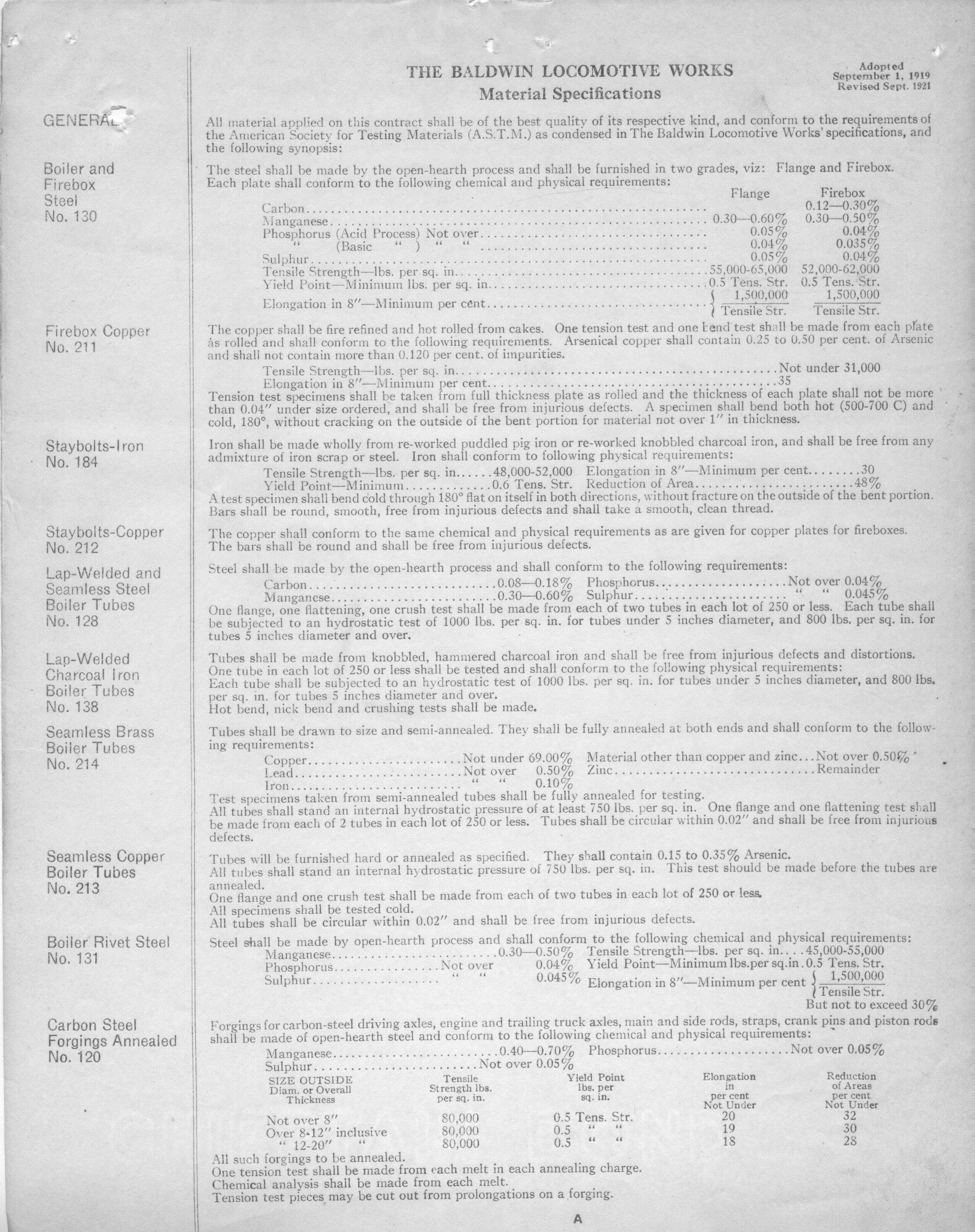 The Baldwin Locomotive Works Specification of No. 103 EngineDescription
