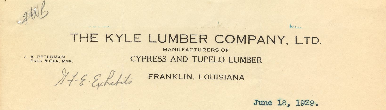 The Kyle Lumber Company began operations in Franklin, Louisiana. The company specialized in the production of cypress and tupelo lumber. However, the company was forced to shut down due to local resources drying up.Collection