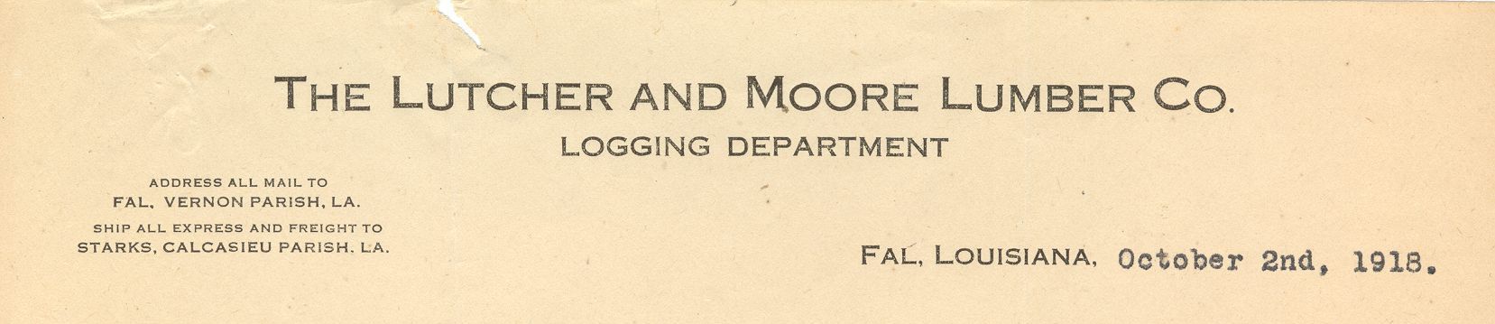 The Lutcher And Moore Lumber Co. began operations in Fal. Vernon Parish, Louisiana. The company specialized in logging. However, the company was forced to close down due to resources drying up.Collection
