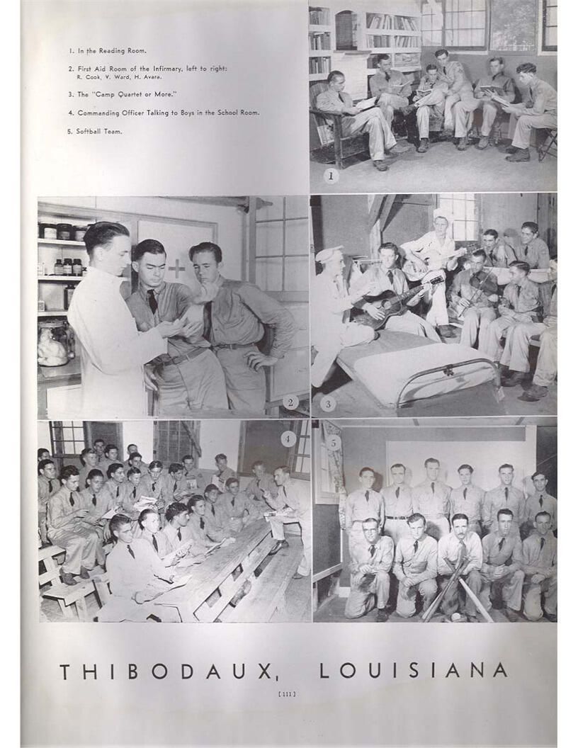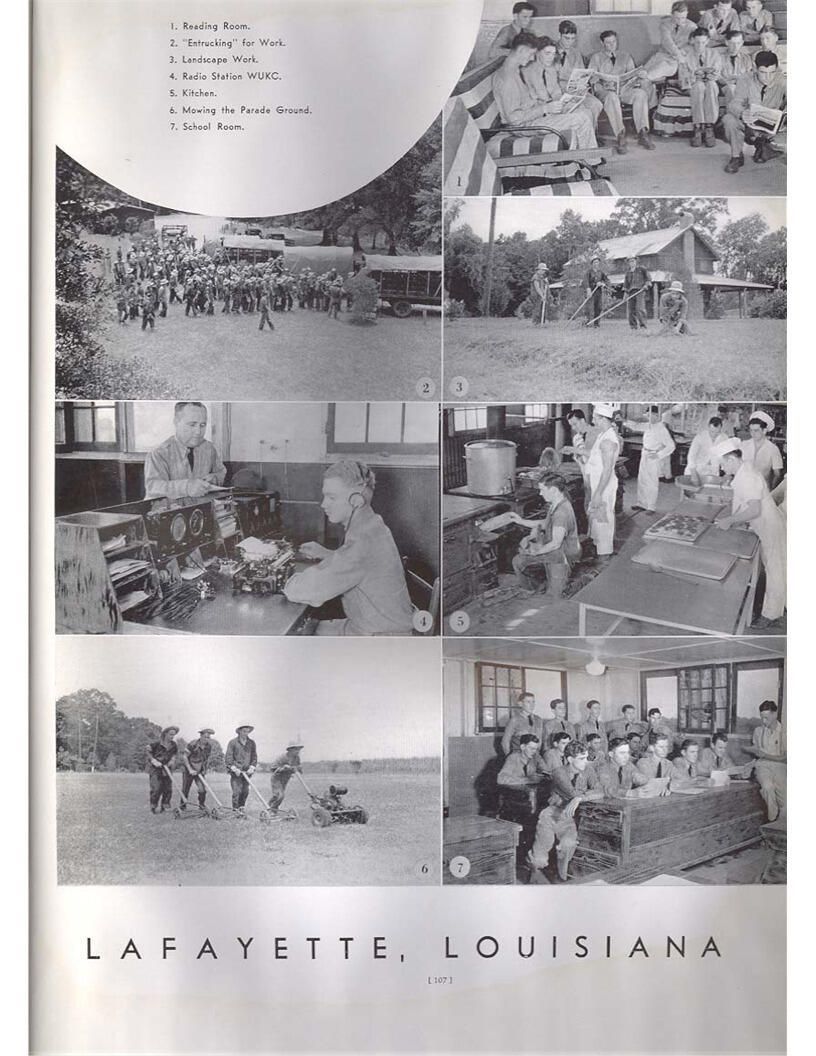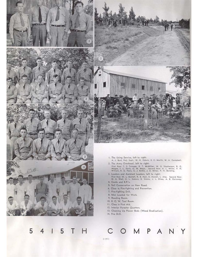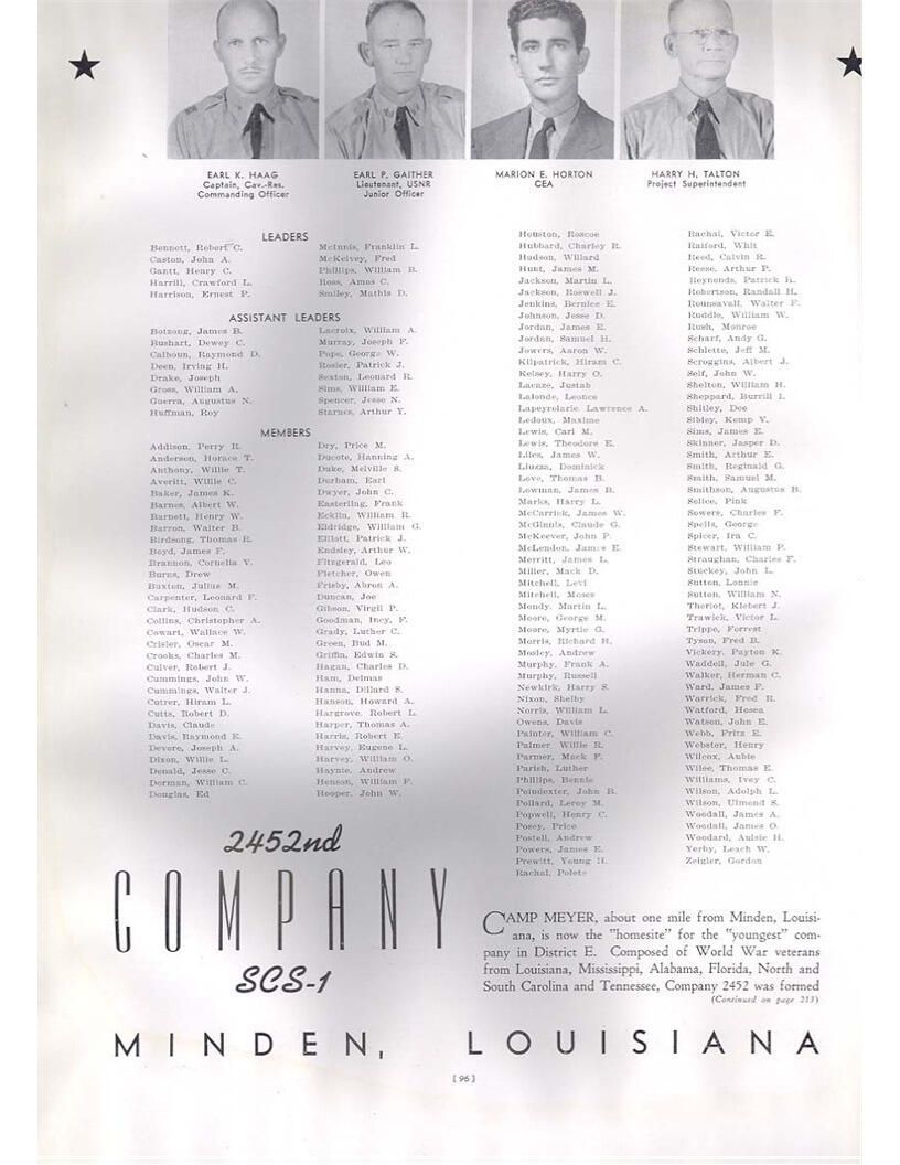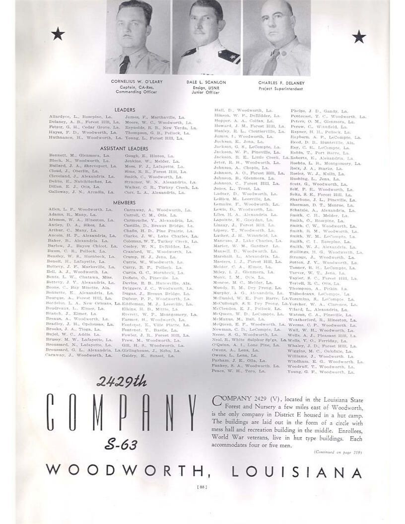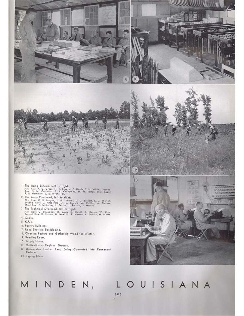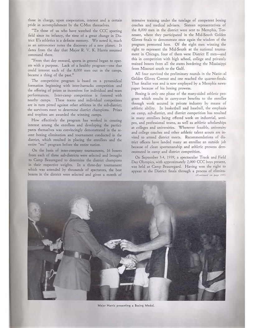 publication about District E of the CCC for the "outsider"; headquarters at Camp Beauregard, LA; Commanding officer at the time was Major R. V. K. Harris of Field Artilleries; brief history of the creation of CCC; what the CCC has been doing and how they're living; then lists off the 43 companies in District E with group photosCollection