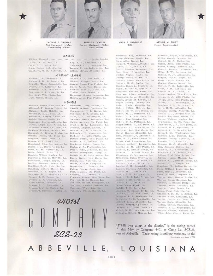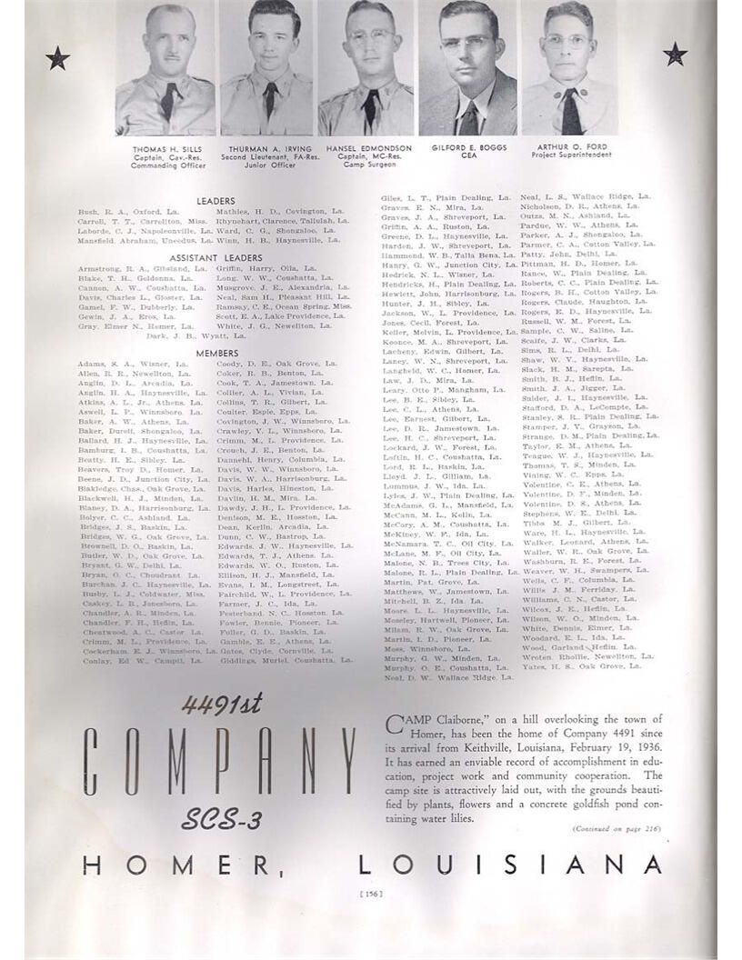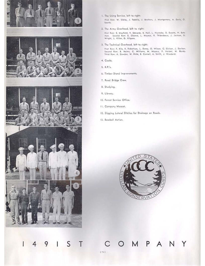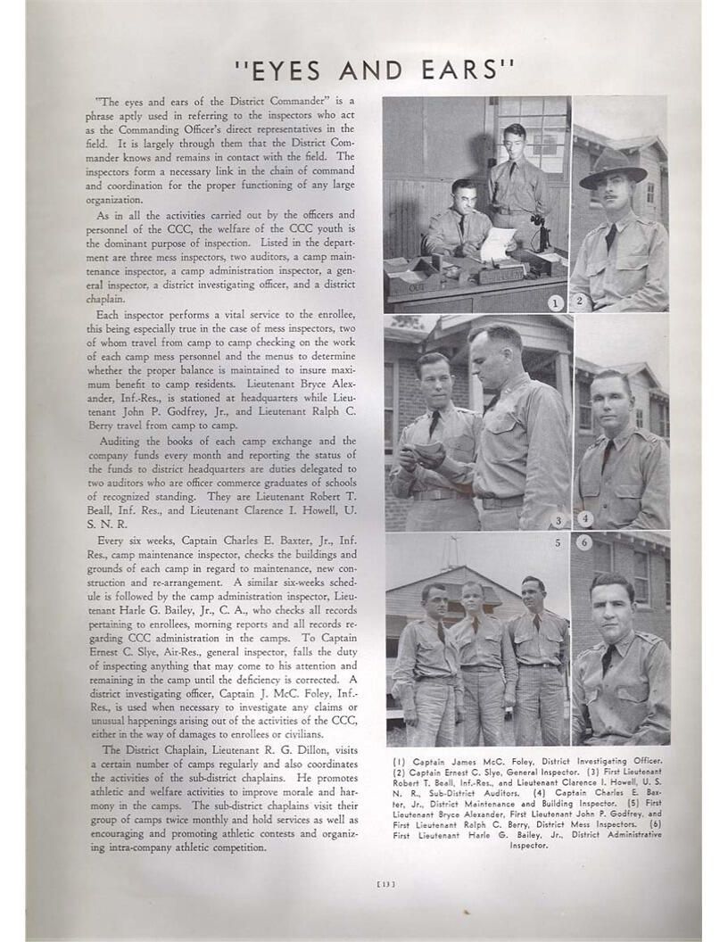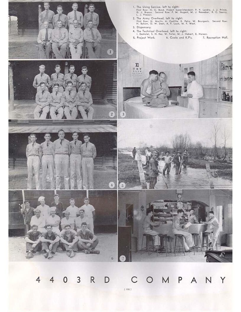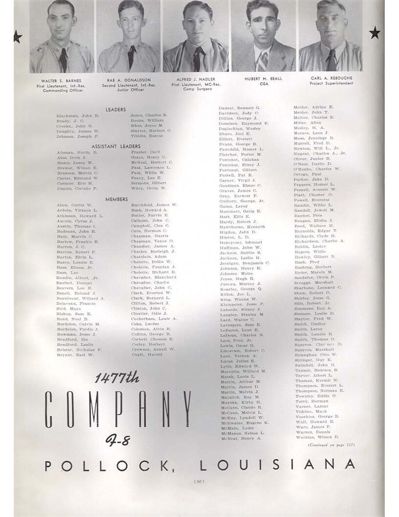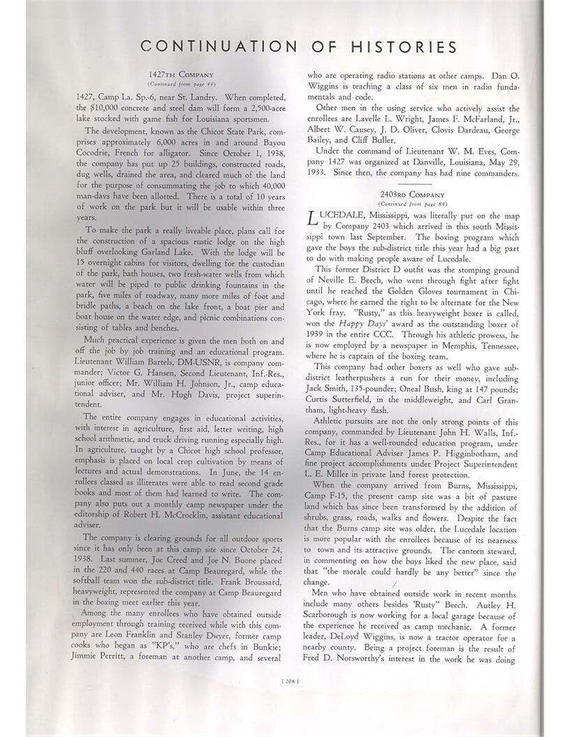 publication about District E of the CCC for the "outsider"; headquarters at Camp Beauregard, LA; Commanding officer at the time was Major R. V. K. Harris of Field Artilleries; brief history of the creation of CCC; what the CCC has been doing and how they're living; then lists off the 43 companies in District E with group photosCollection
