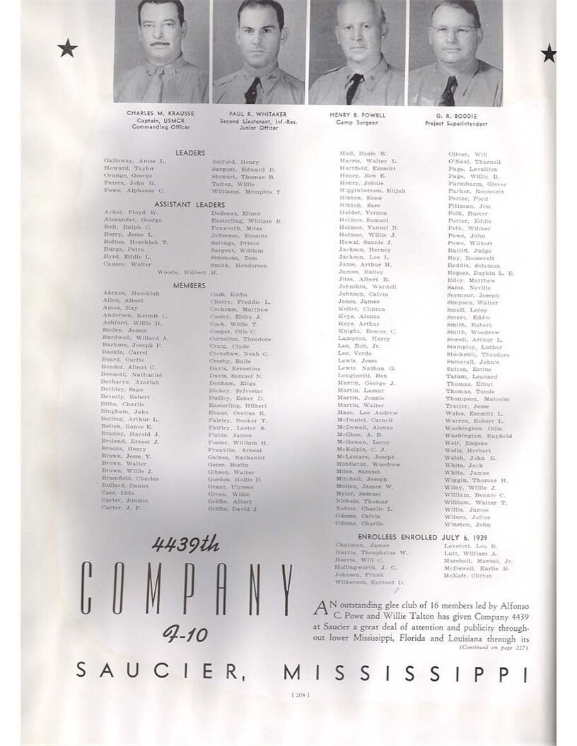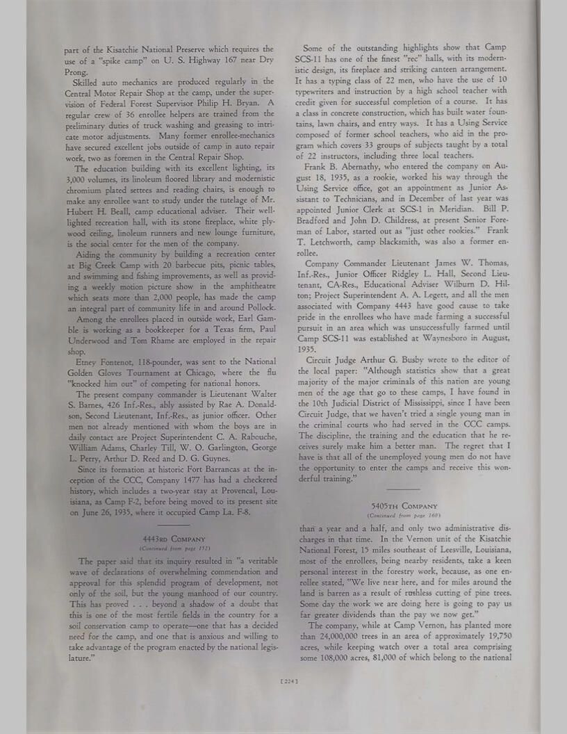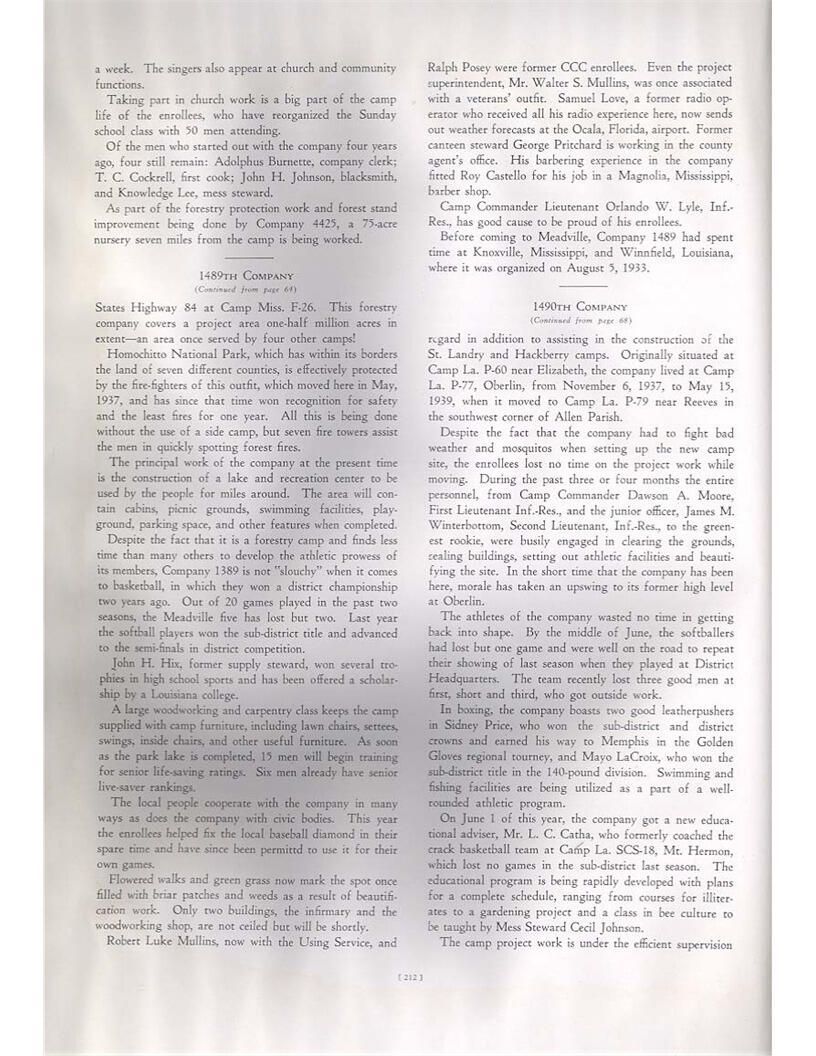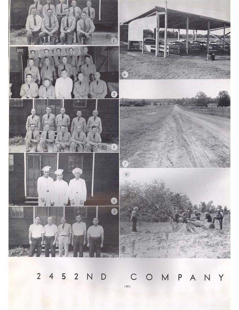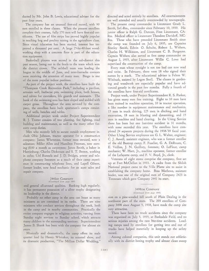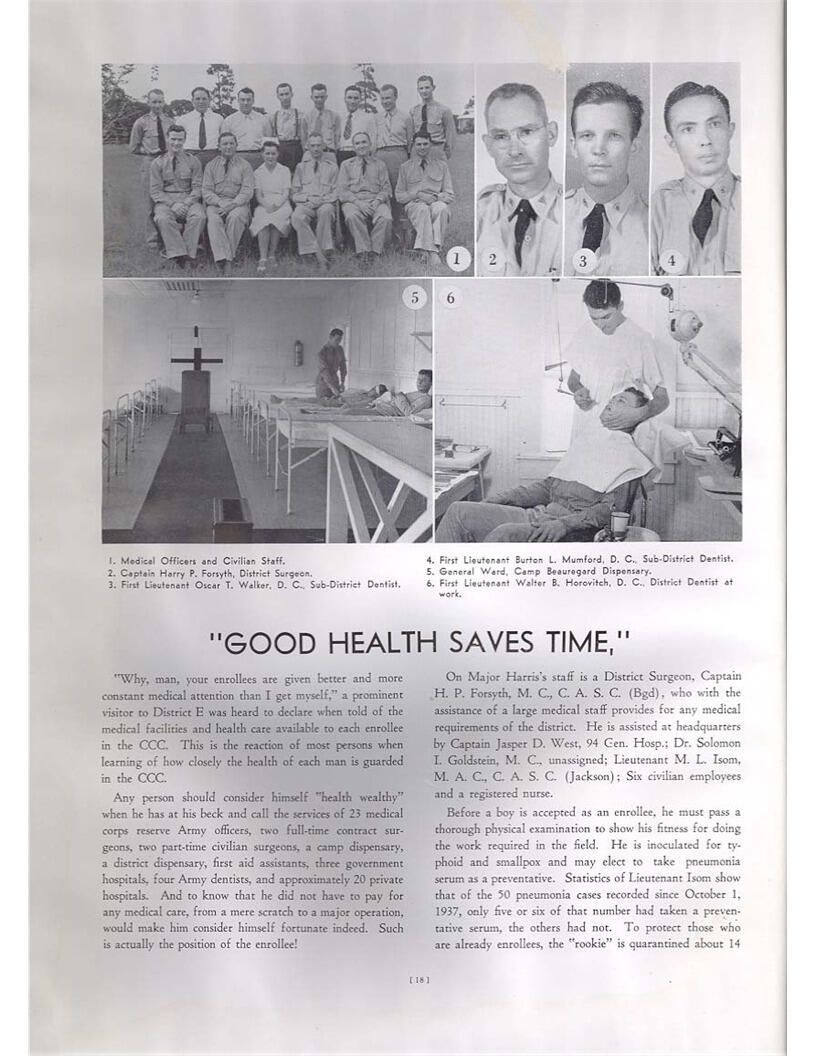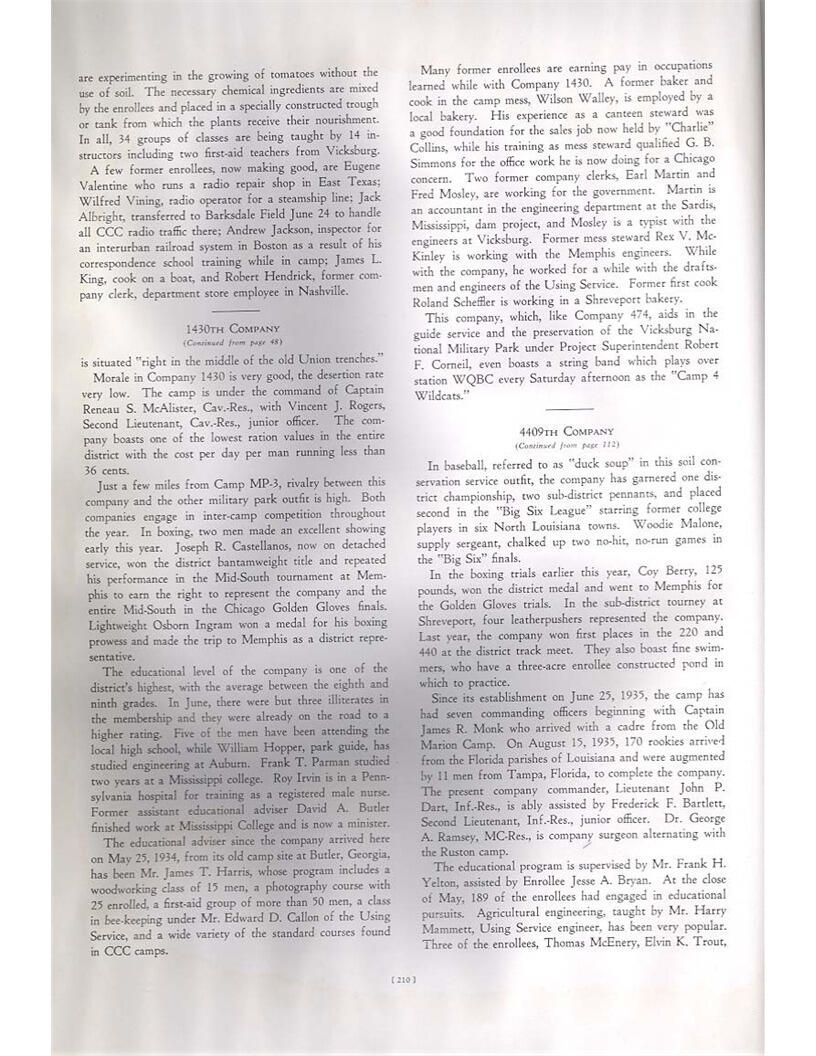 publication about District E of the CCC for the "outsider"; headquarters at Camp Beauregard, LA; Commanding officer at the time was Major R. V. K. Harris of Field Artilleries; brief history of the creation of CCC; what the CCC has been doing and how they're living; then lists off the 43 companies in District E with group photosCollection