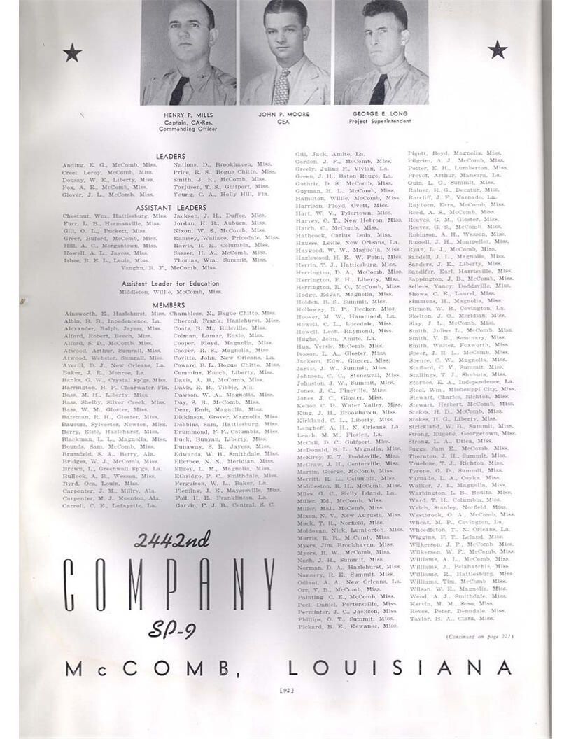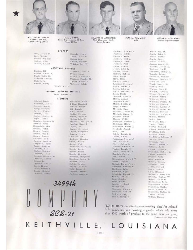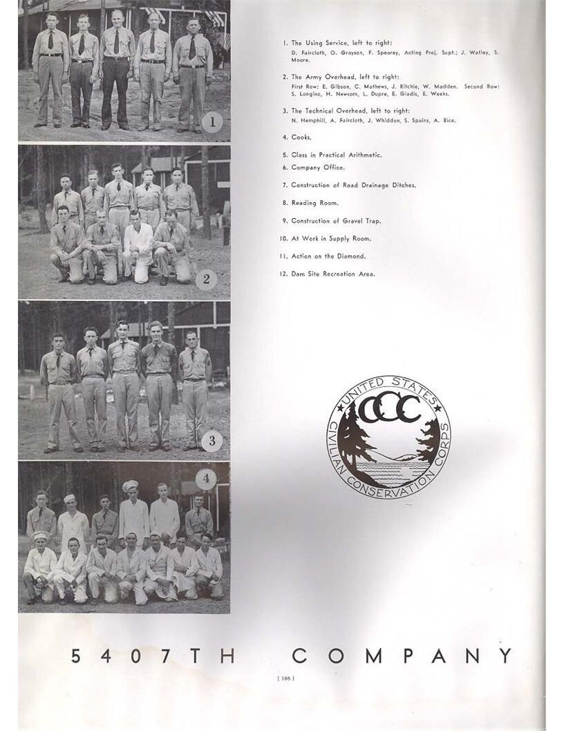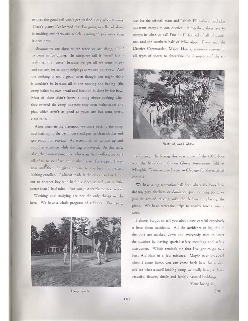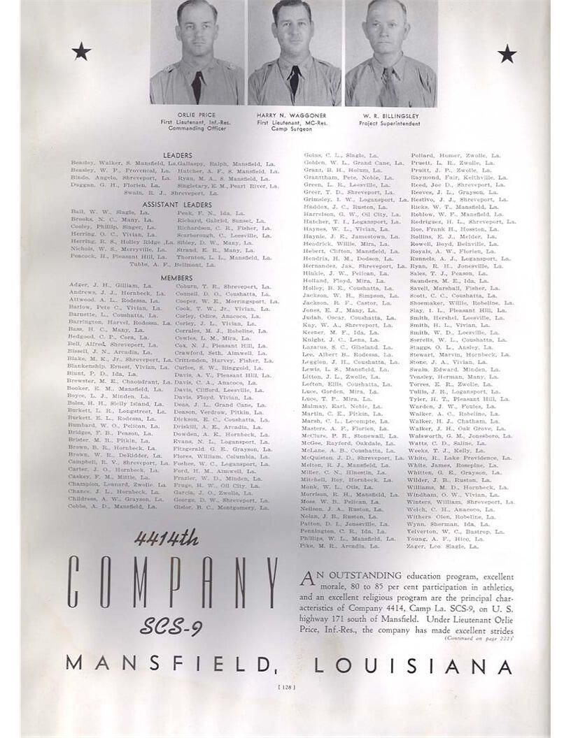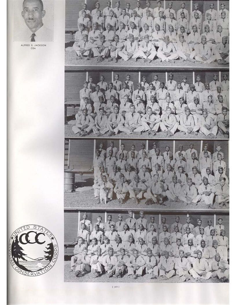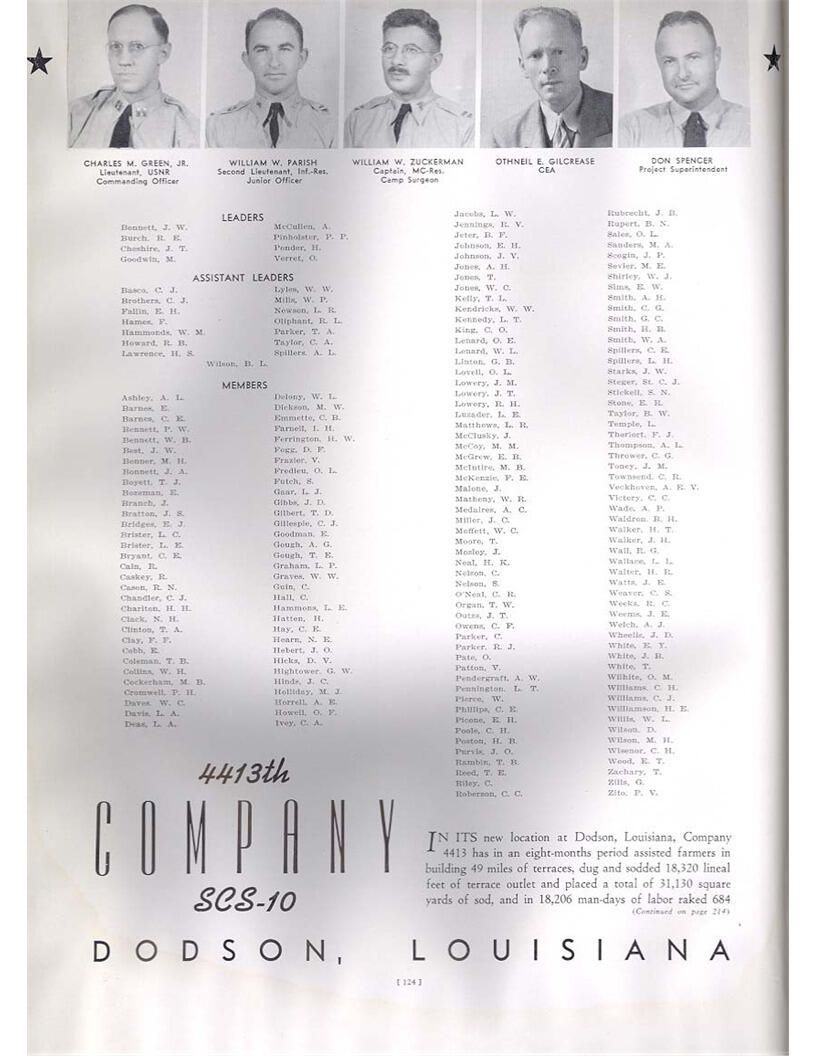 publication about District E of the CCC for the "outsider"; headquarters at Camp Beauregard, LA; Commanding officer at the time was Major R. V. K. Harris of Field Artilleries; brief history of the creation of CCC; what the CCC has been doing and how they're living; then lists off the 43 companies in District E with group photosCollection