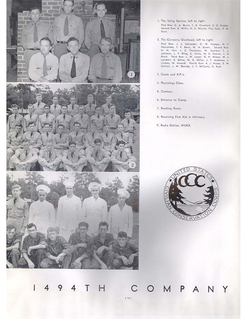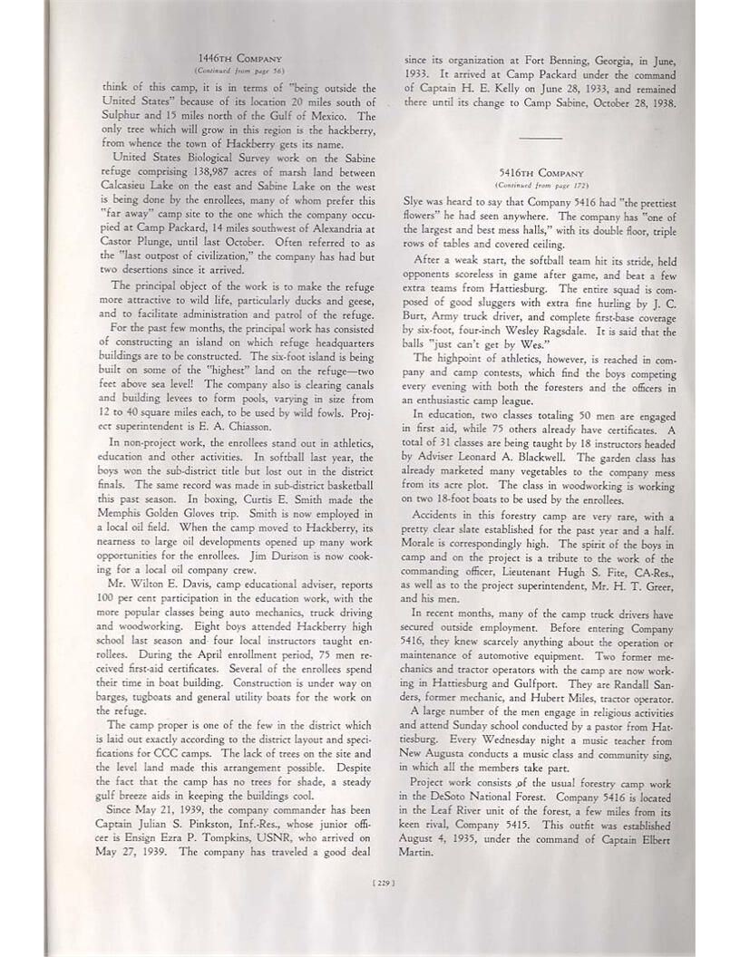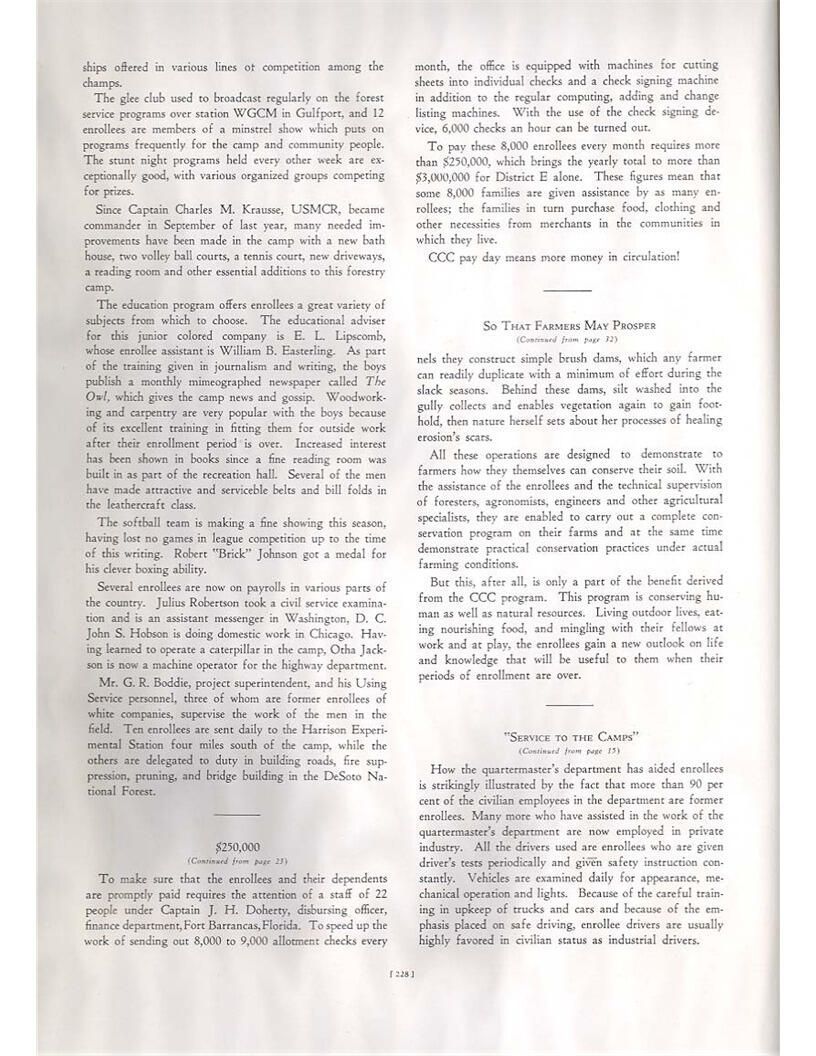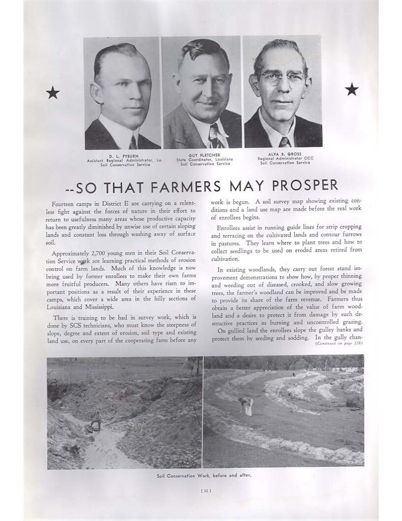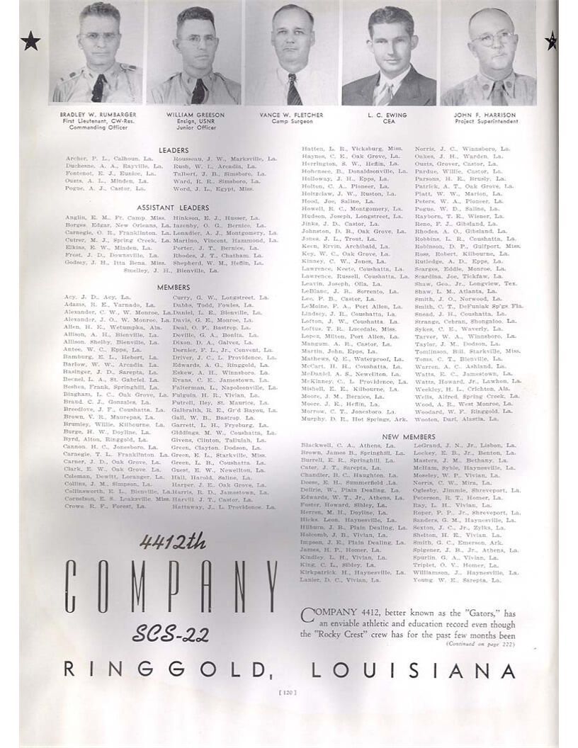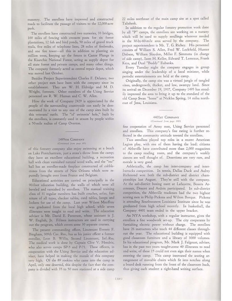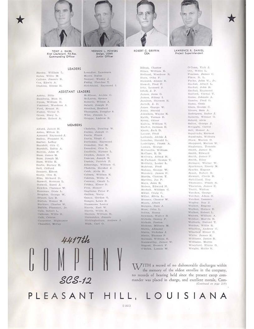 publication about District E of the CCC for the "outsider"; headquarters at Camp Beauregard, LA; Commanding officer at the time was Major R. V. K. Harris of Field Artilleries; brief history of the creation of CCC; what the CCC has been doing and how they're living; then lists off the 43 companies in District E with group photosCollection