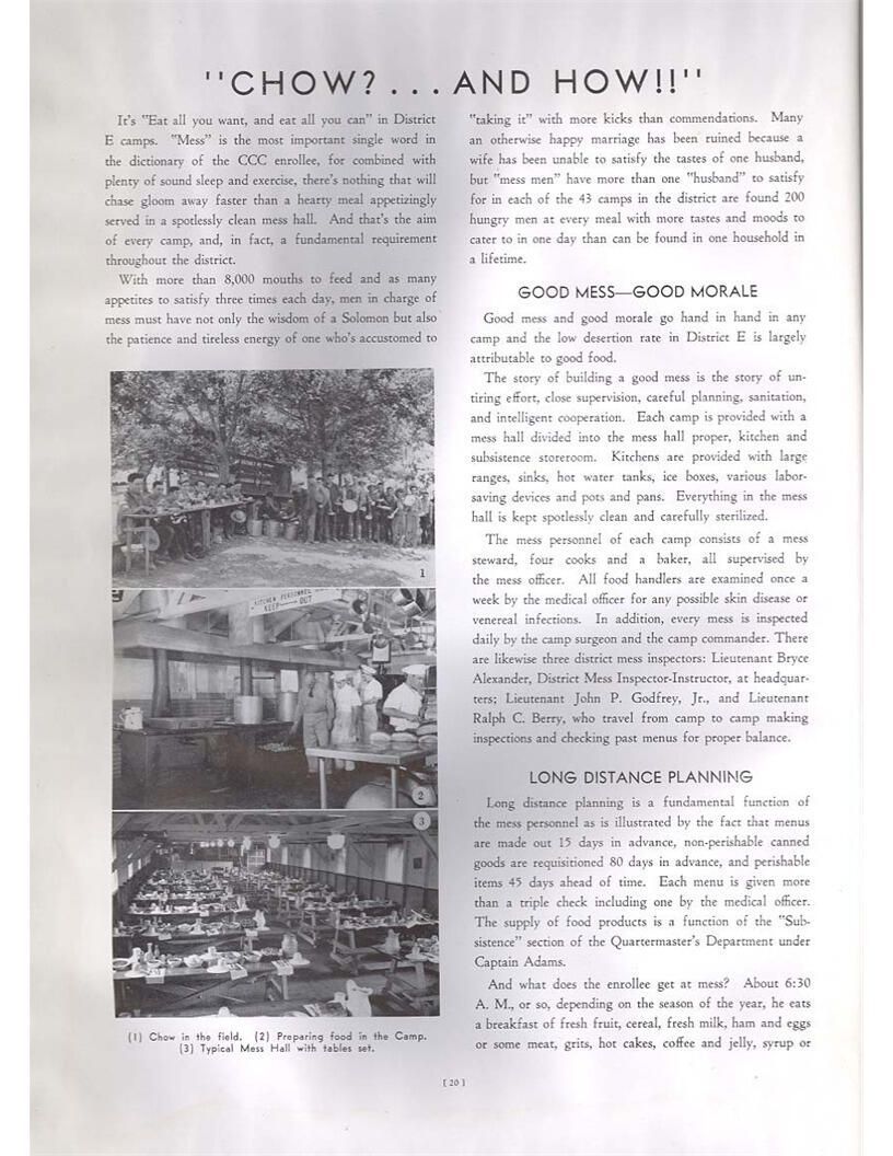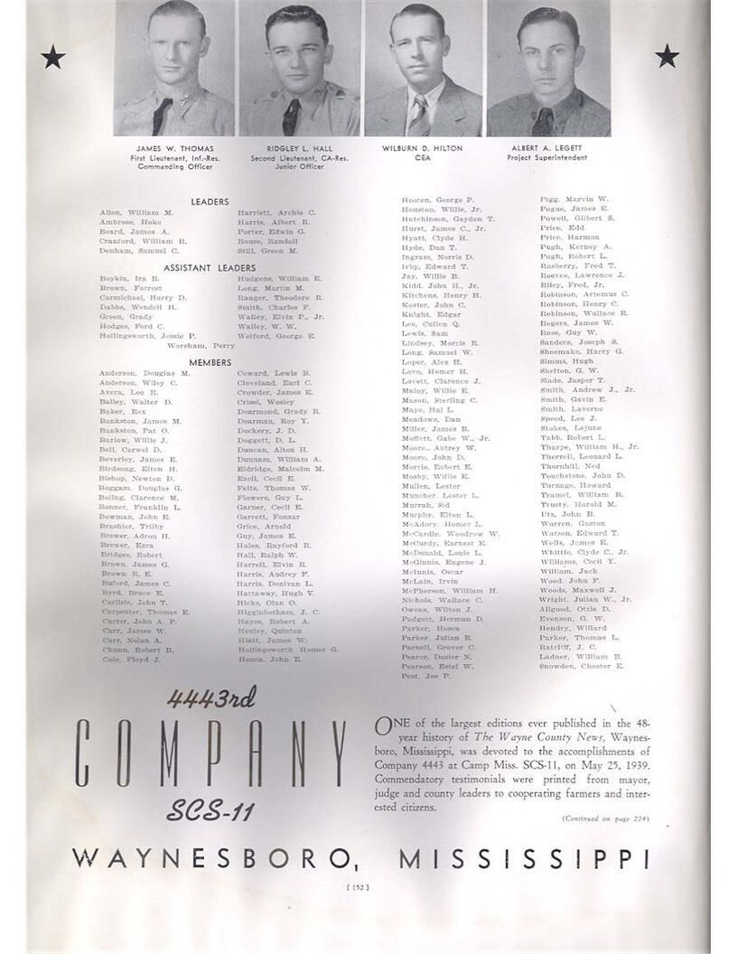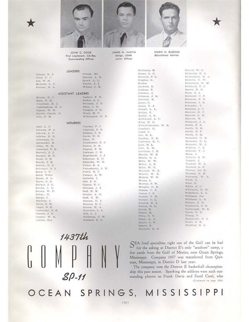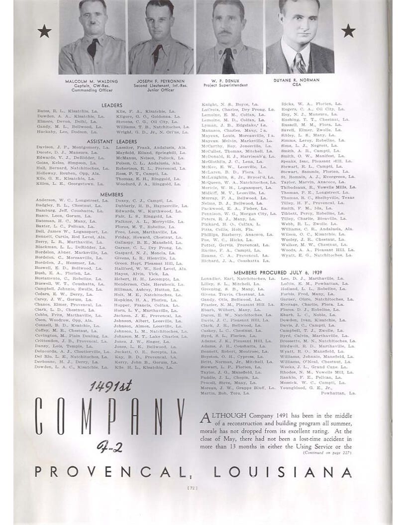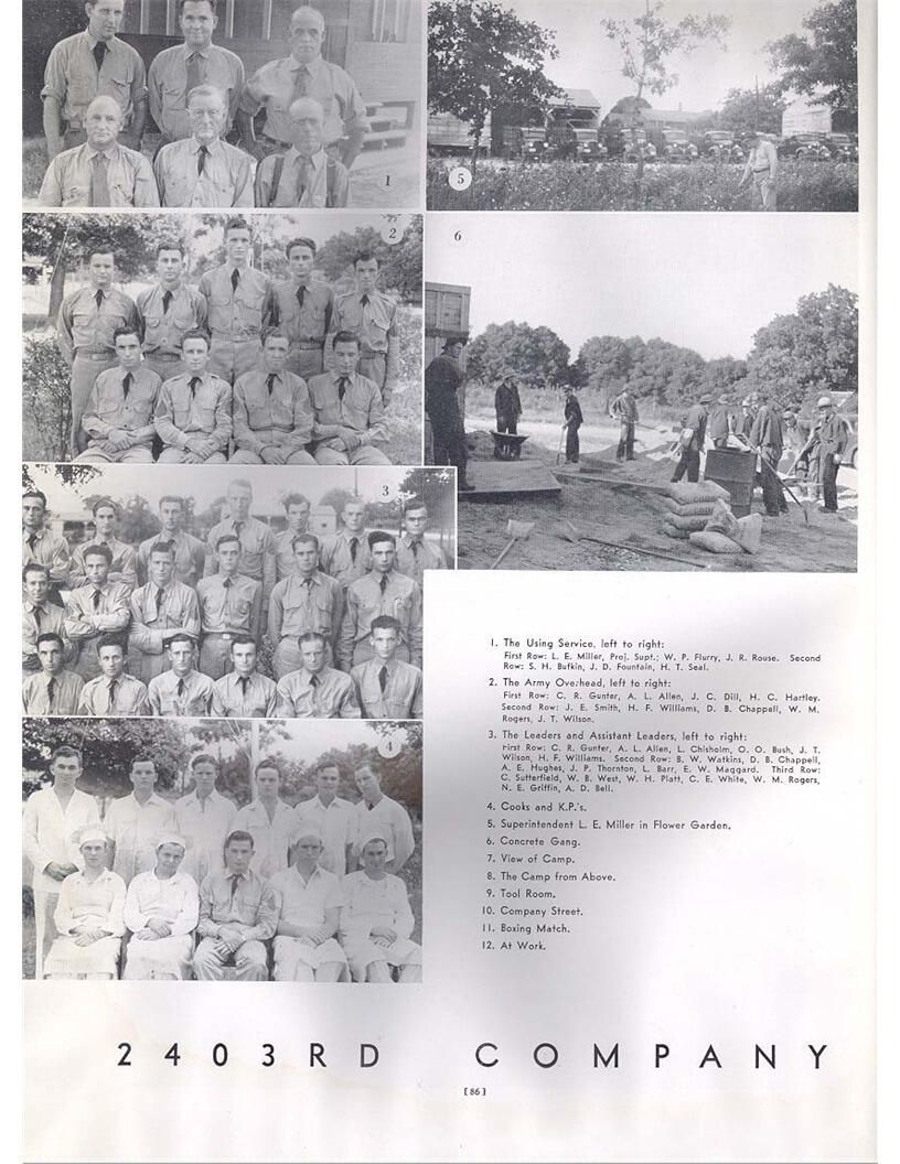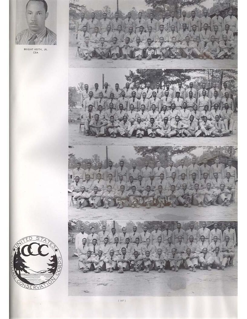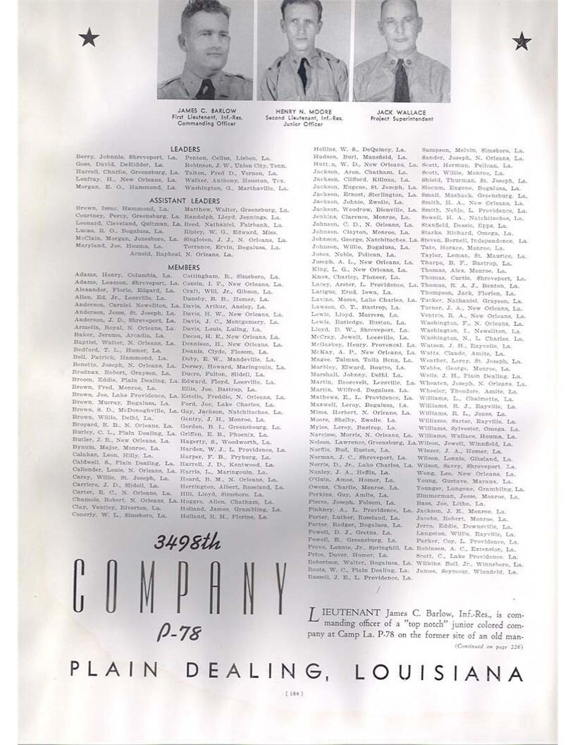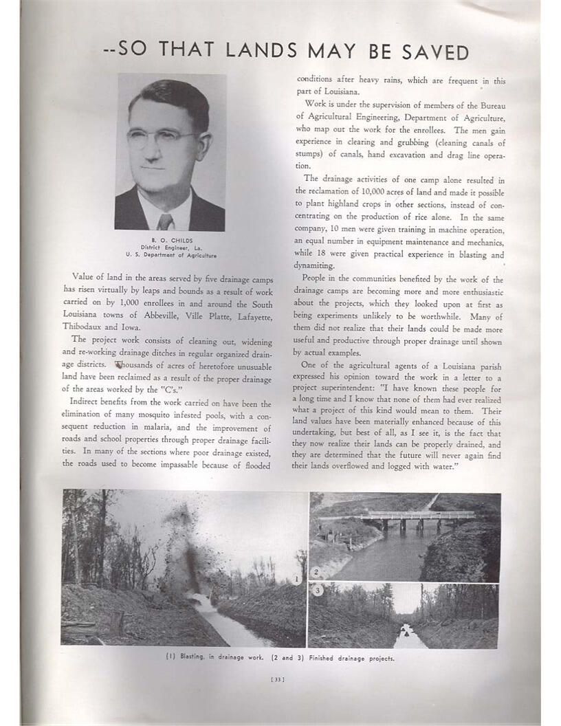 publication about District E of the CCC for the "outsider"; headquarters at Camp Beauregard, LA; Commanding officer at the time was Major R. V. K. Harris of Field Artilleries; brief history of the creation of CCC; what the CCC has been doing and how they're living; then lists off the 43 companies in District E with group photosCollection