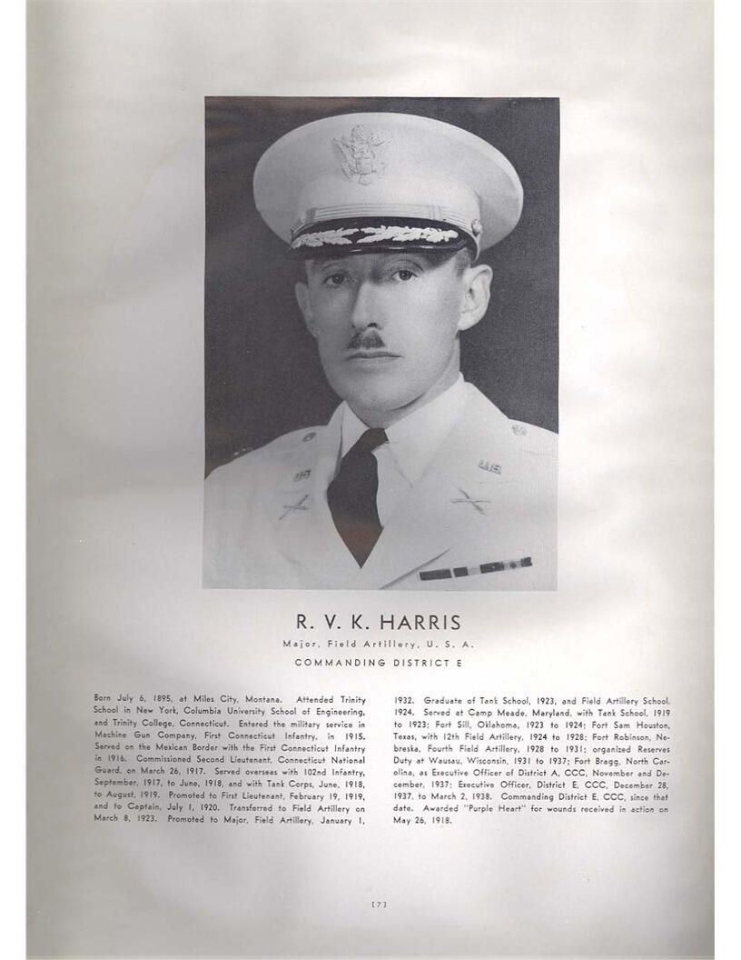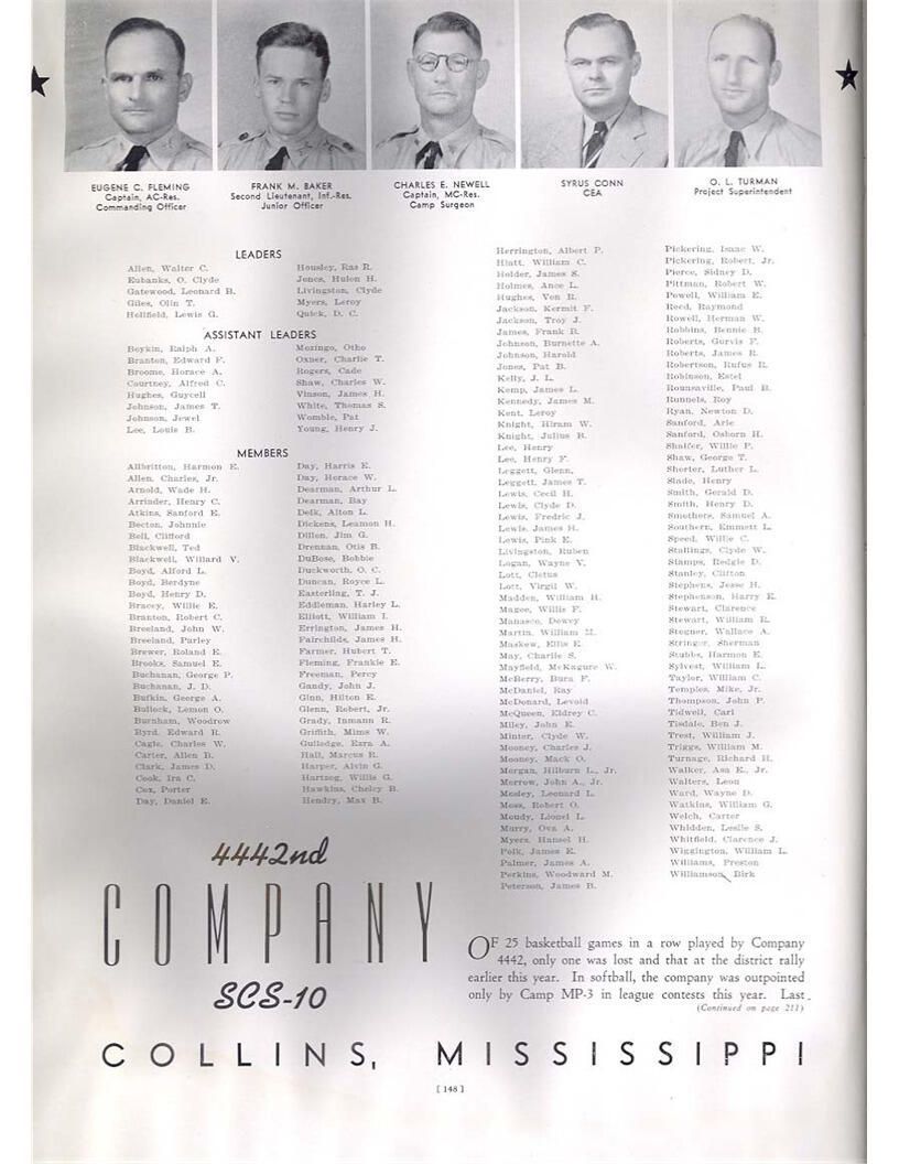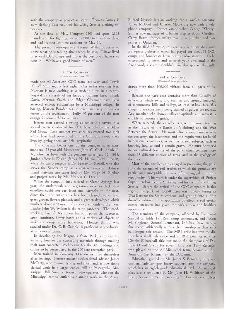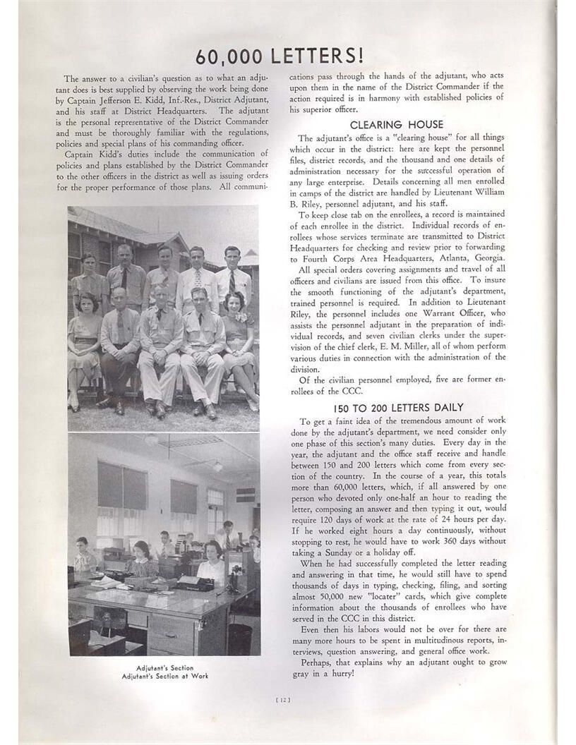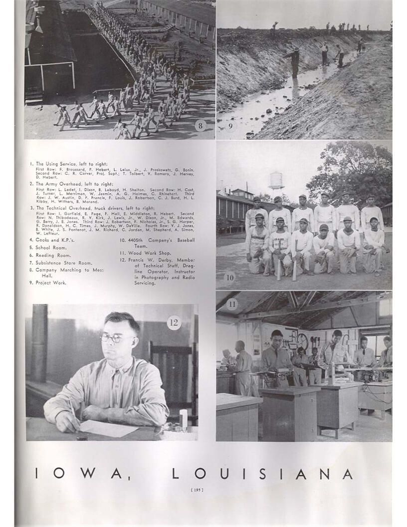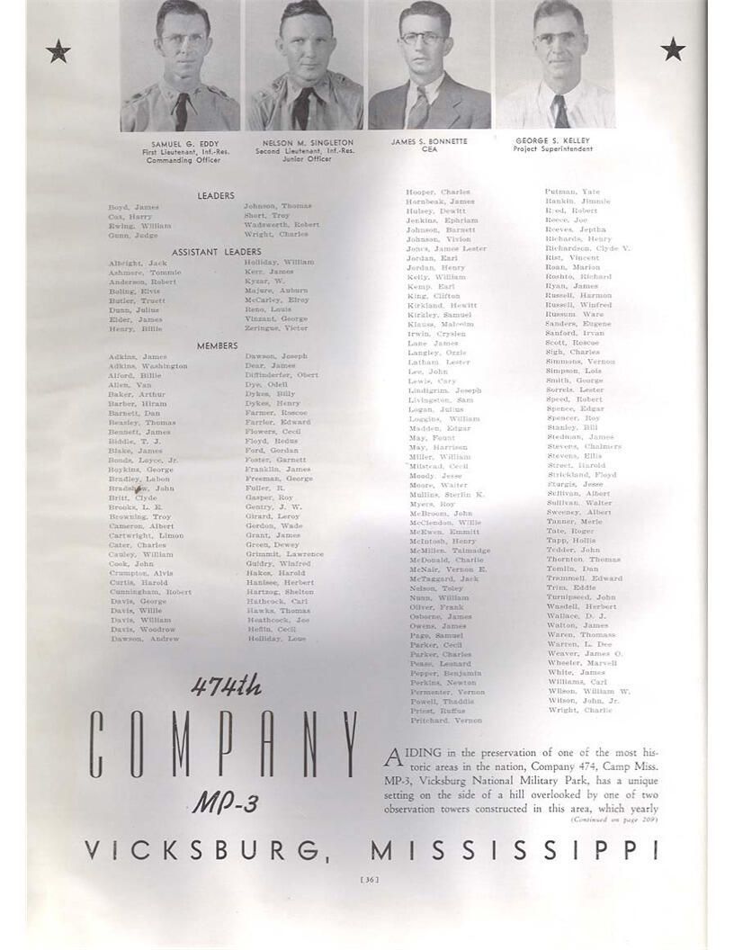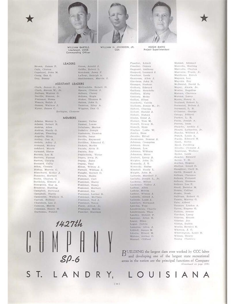publication about District E of the CCC for the "outsider"; headquarters at Camp Beauregard, LA; Commanding officer at the time was Major R. V. K. Harris of Field Artilleries; brief history of the creation of CCC; what the CCC has been doing and how they're living; then lists off the 43 companies in District E with group photosCollection