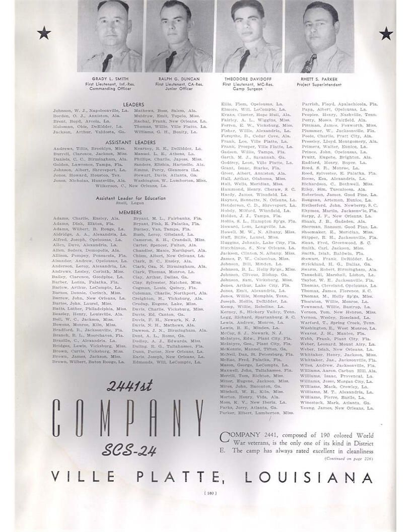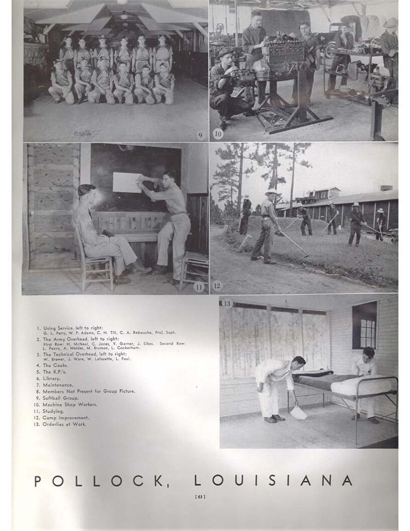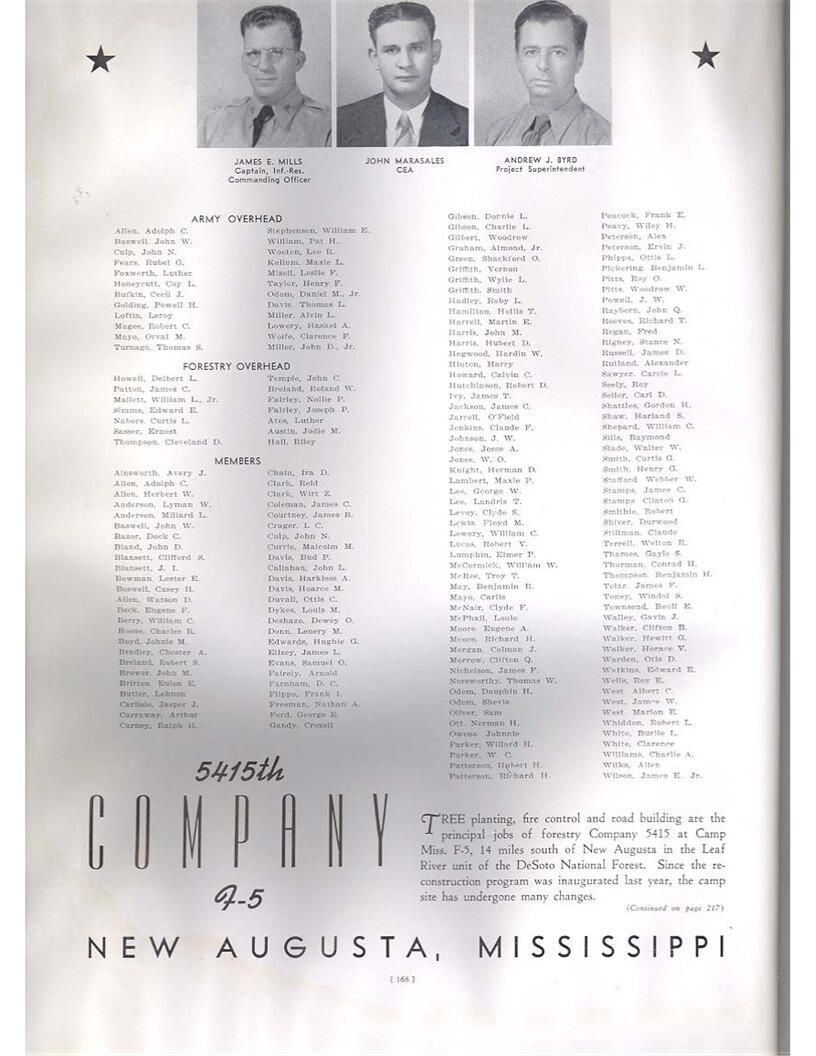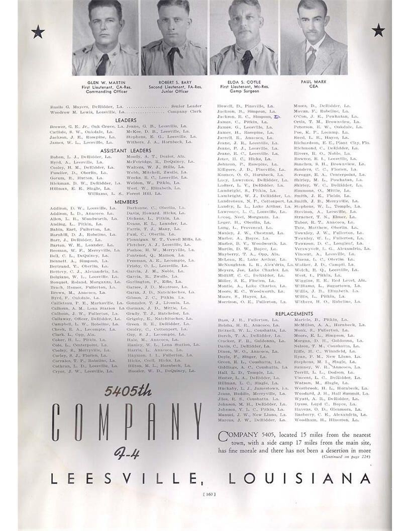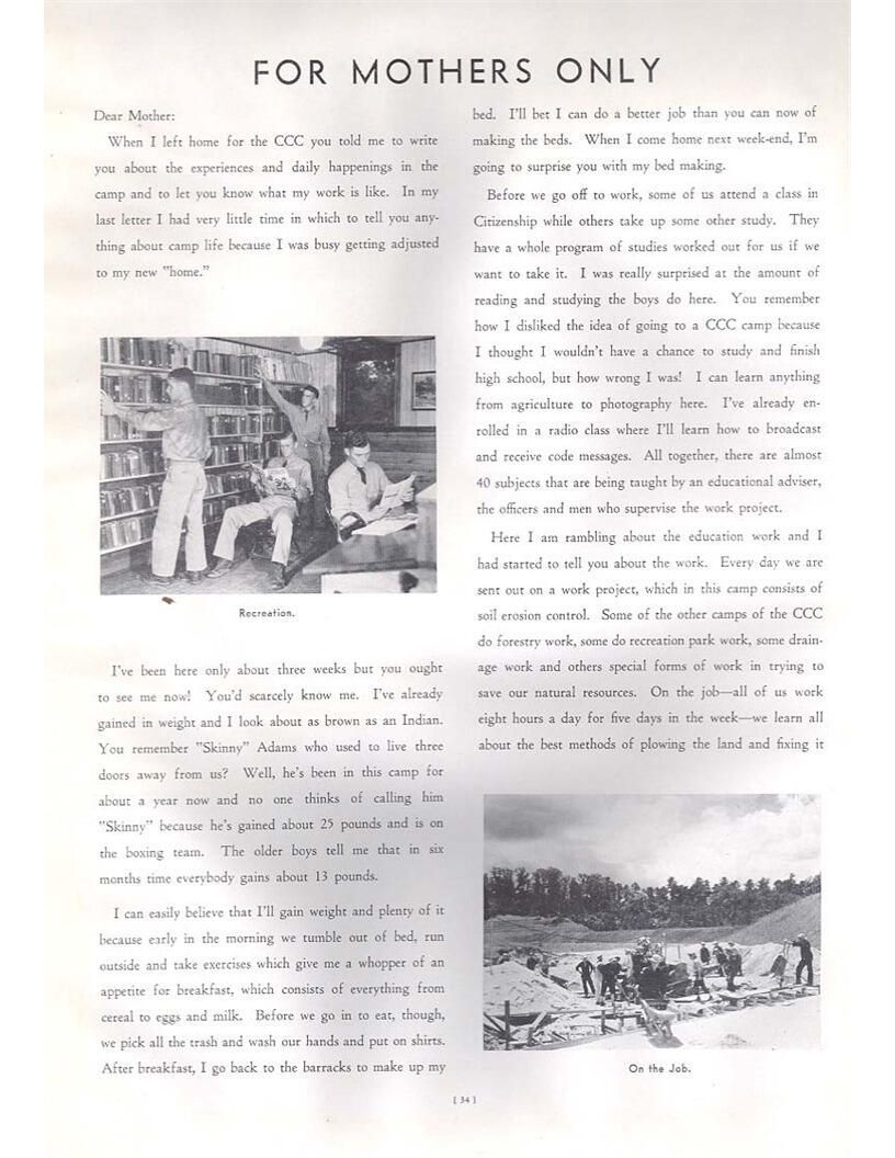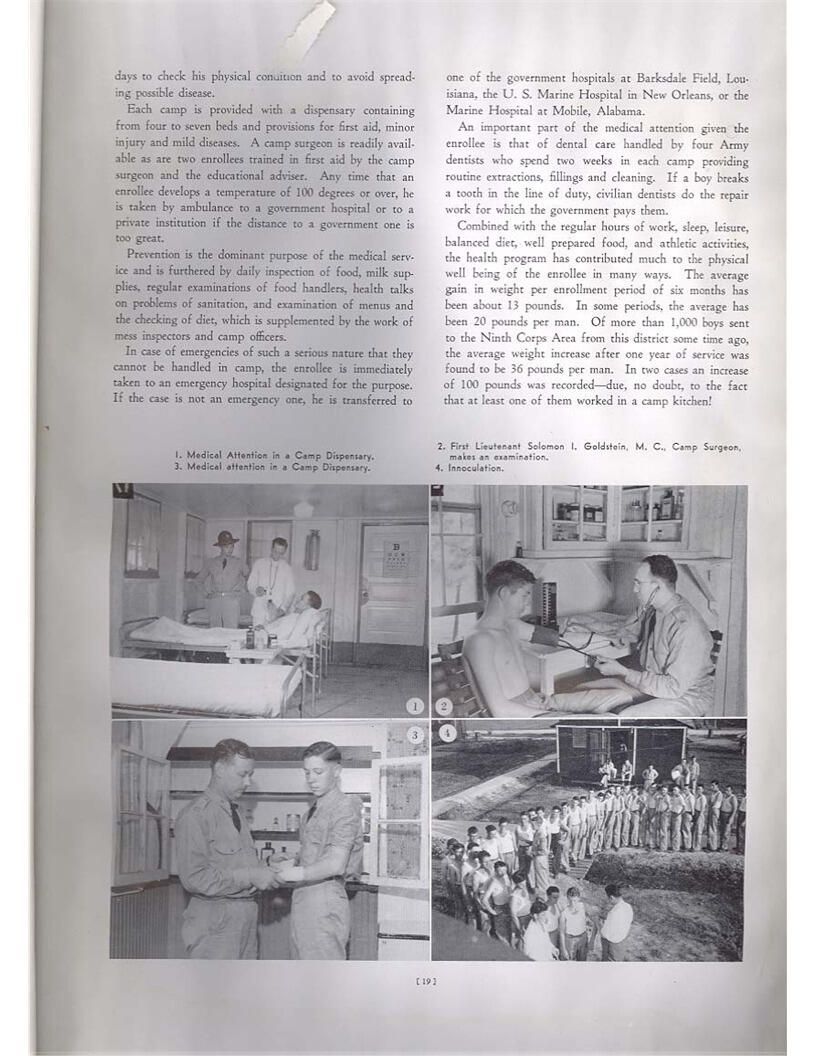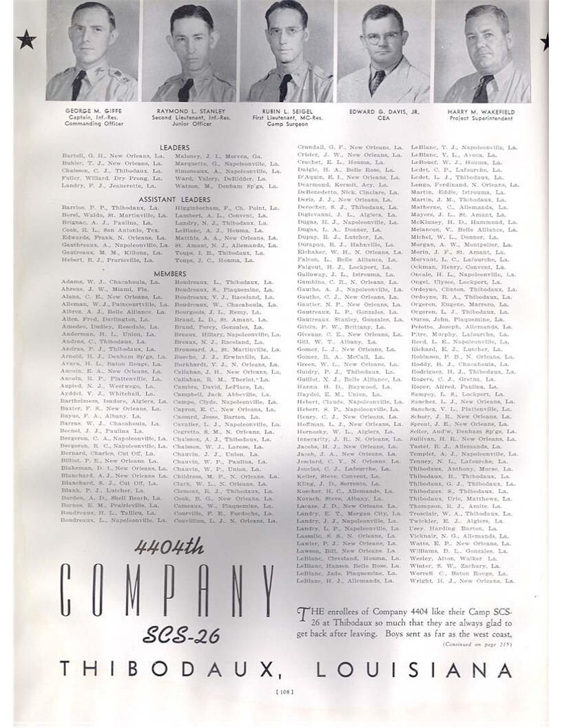 publication about District E of the CCC for the "outsider"; headquarters at Camp Beauregard, LA; Commanding officer at the time was Major R. V. K. Harris of Field Artilleries; brief history of the creation of CCC; what the CCC has been doing and how they're living; then lists off the 43 companies in District E with group photosCollection