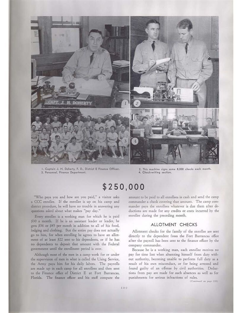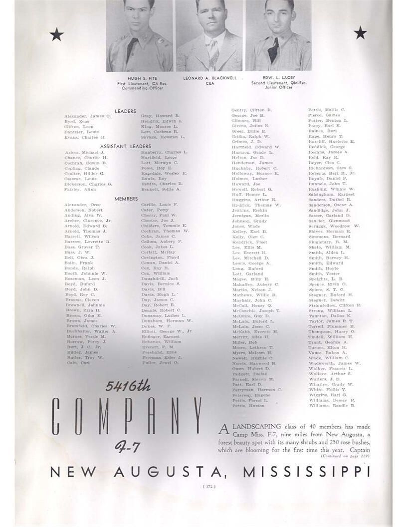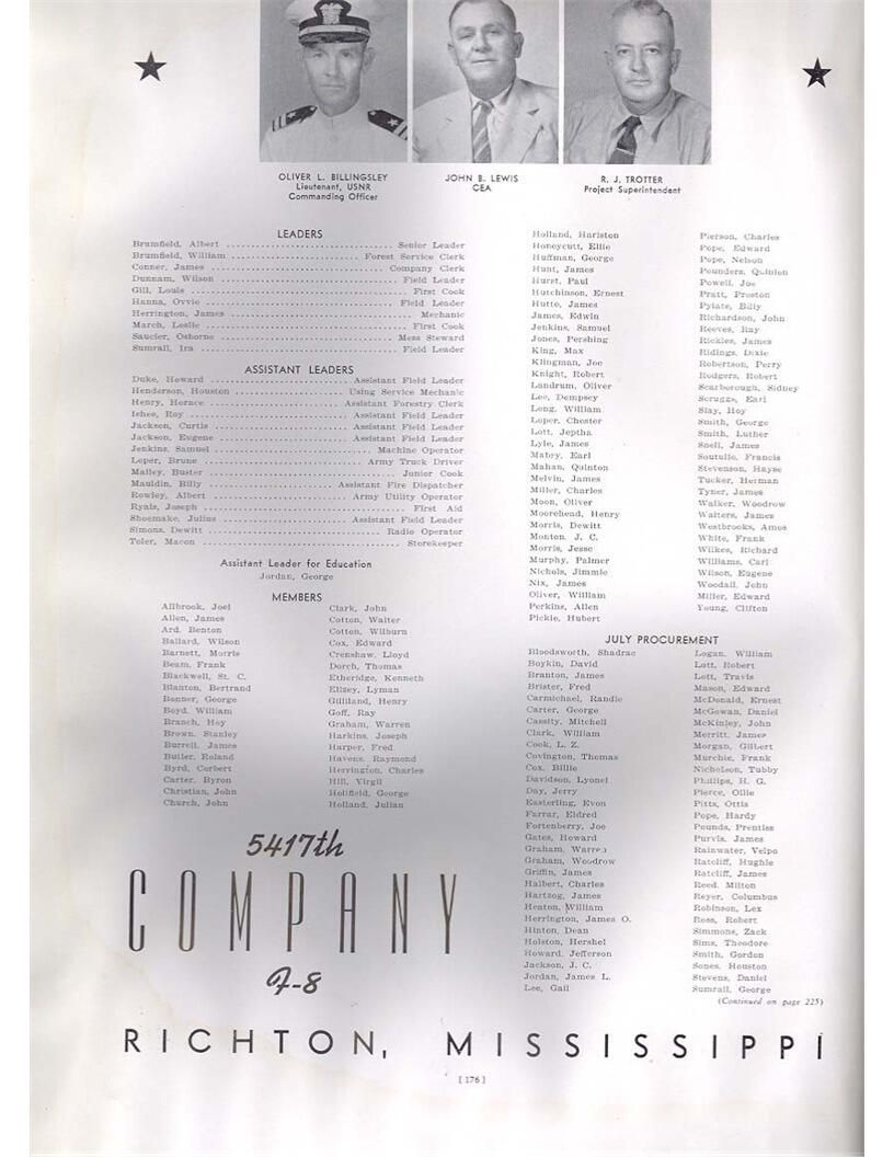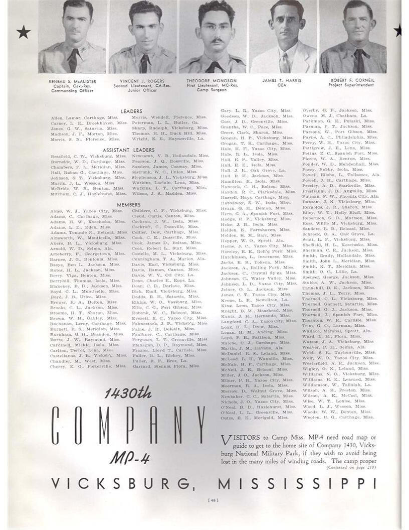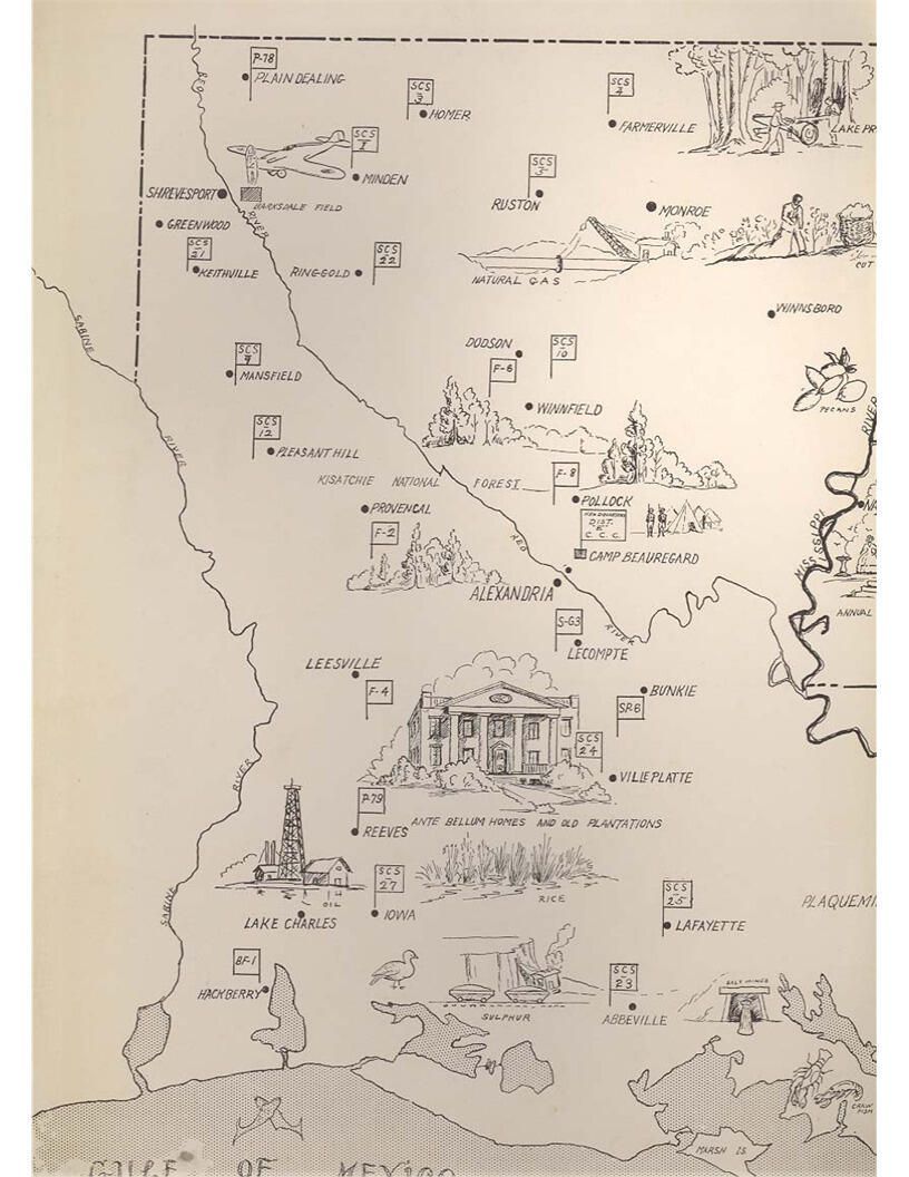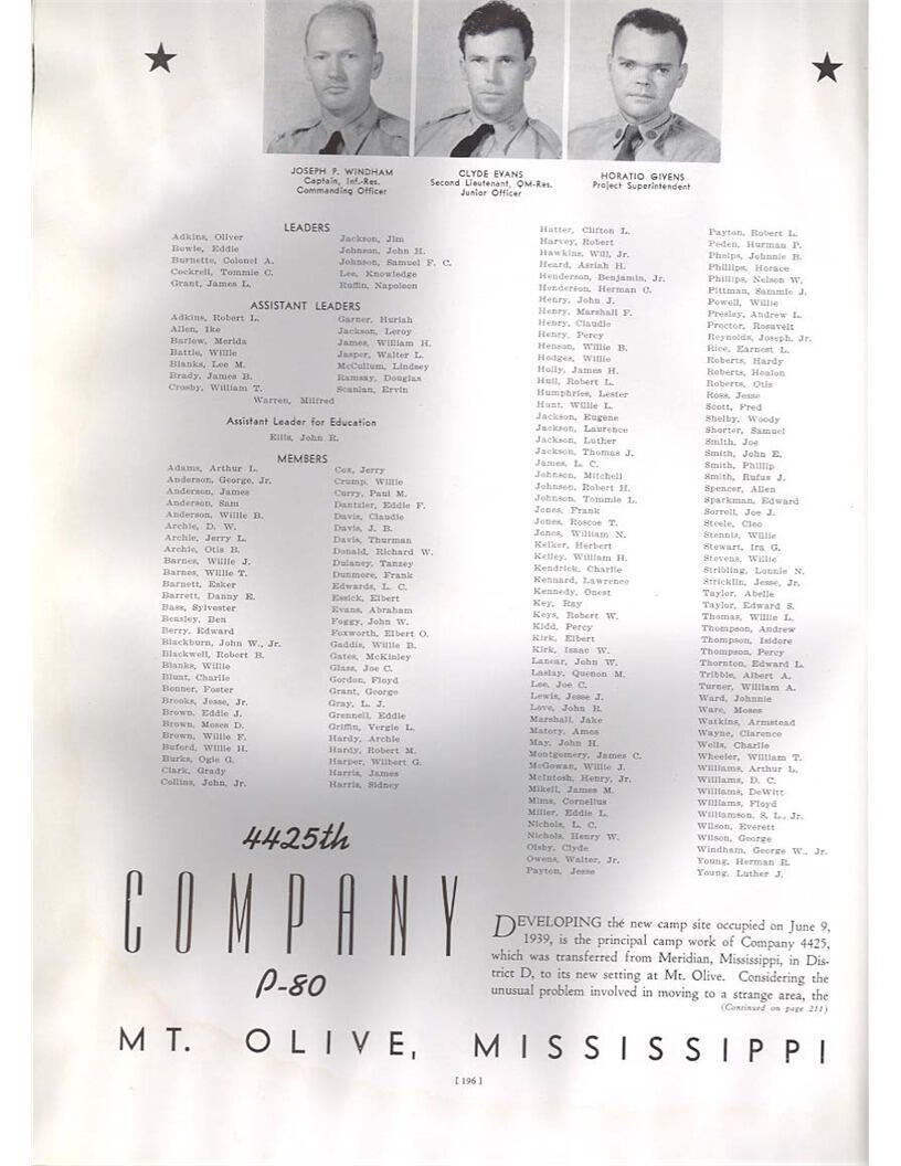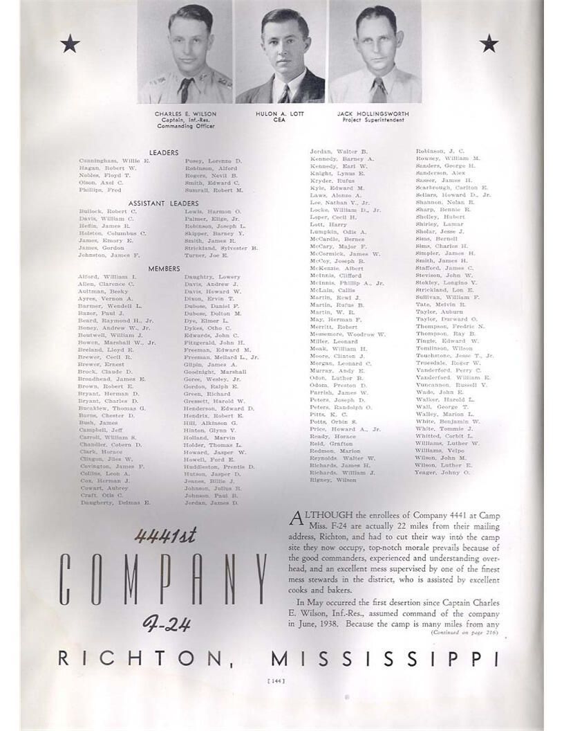 publication about District E of the CCC for the "outsider"; headquarters at Camp Beauregard, LA; Commanding officer at the time was Major R. V. K. Harris of Field Artilleries; brief history of the creation of CCC; what the CCC has been doing and how they're living; then lists off the 43 companies in District E with group photosCollection