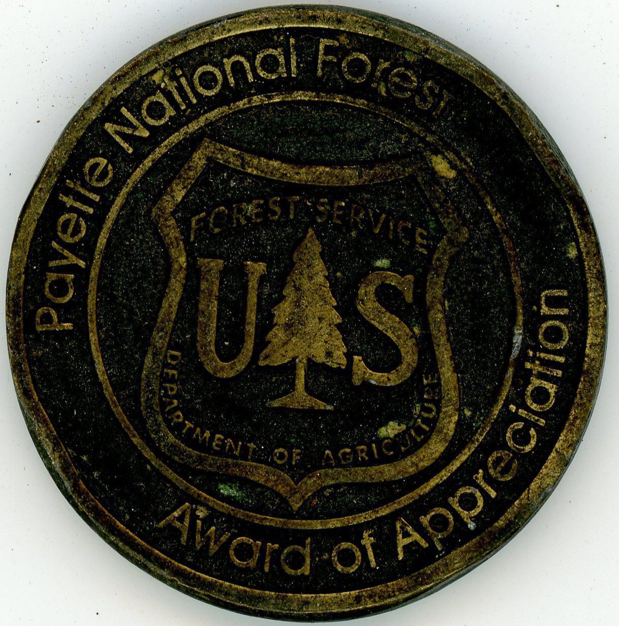 Given to a respected individual for their work or participation in keeping Louisiana's forest healthy. Origin of coin is presumed to have circulated around Fort Polk.Collection