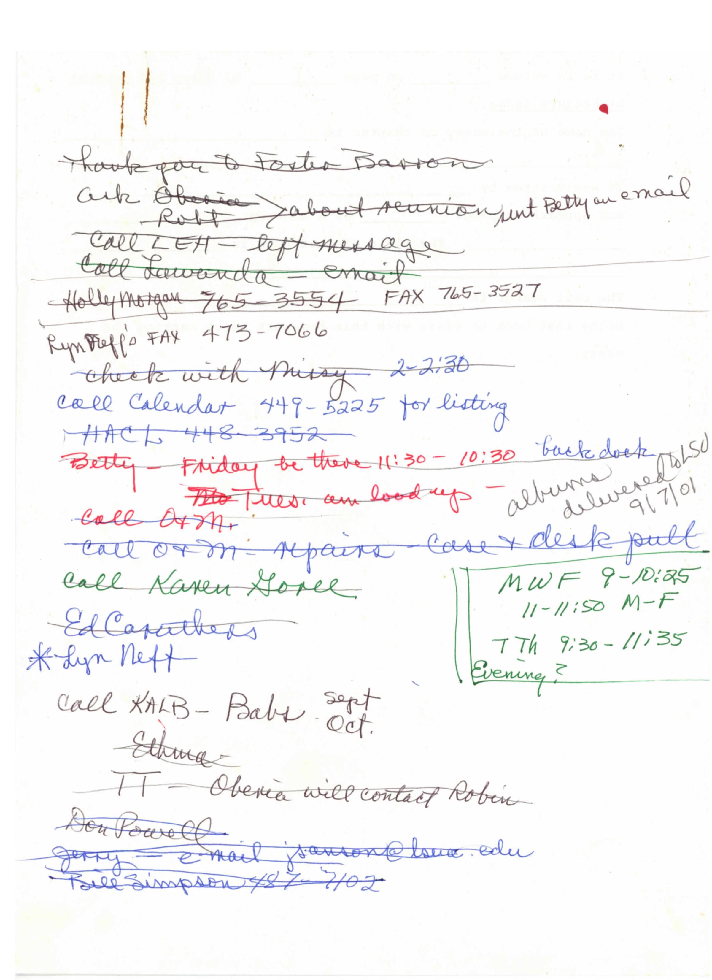 lists of names crossed out, notes, and lists that are crossed outCreator